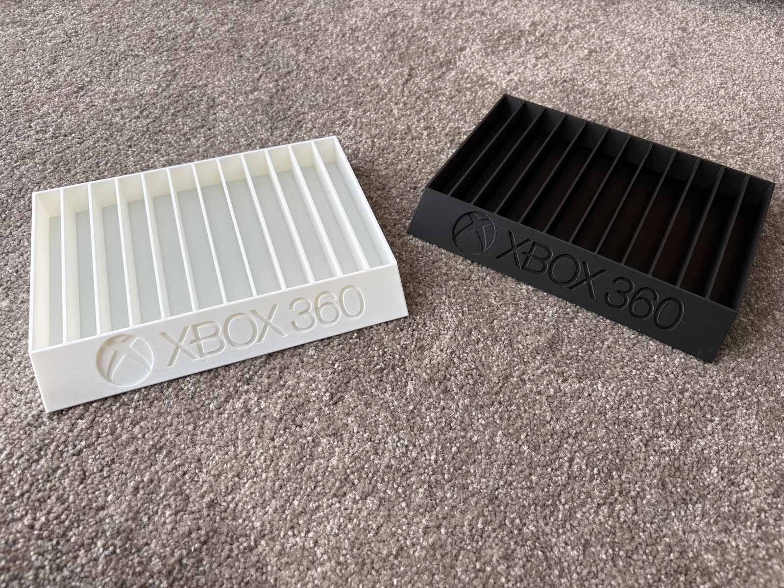 Kệ để đĩa game có logo phong cách Xbox 360, phù hợp cho hầu hết các loại game sử dụng vỏ đĩa chuẩn DVD như Xbox đời đầu hoặc Xbox 360. Kệ chứa được 12 đĩa và độ rộng vừa phải, không quá chật nên sẽ không làm trầy xước hay hư hại vỏ đĩa của bạn. Bạn có thể cần dùng keo để dán cố định phần logo hoặc các chữ cái lên kệ. Chúc các bạn in vui vẻ nhé! :)