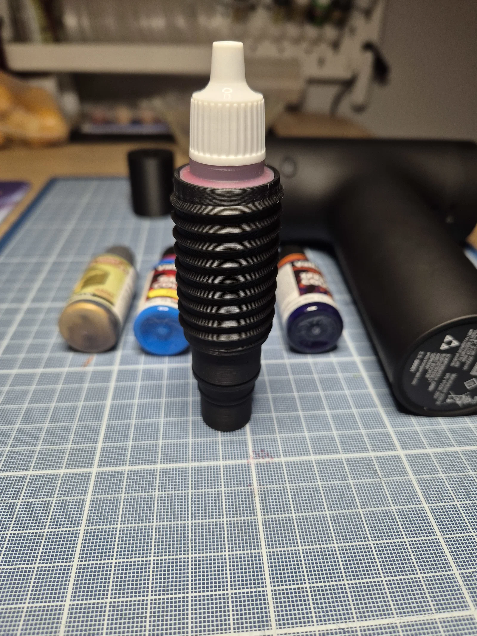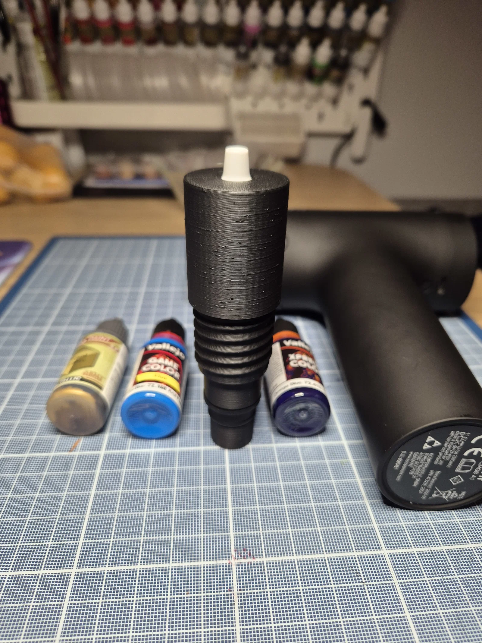 Bạn là một người đam mê sơn mô hình và thường xuyên cảm thấy mệt mỏi vì phải lắc từng lọ sơn bằng tay trong thời gian dài? Đây chính là giải pháp sáng tạo dành cho bạn. Phụ kiện này được thiết kế để lắp trực tiếp vào các dòng súng massage Crivit, biến thiết bị chăm sóc sức khỏe của bạn thành một chiếc máy lắc sơn chuyên dụng cực kỳ mạnh mẽ. Với thiết kế nhỏ gọn và tiện lợi, phụ kiện này giúp hòa trộn các loại sơn như Army Painter hay Vallejo một cách nhanh chóng và đồng nhất chỉ trong vài giây.
