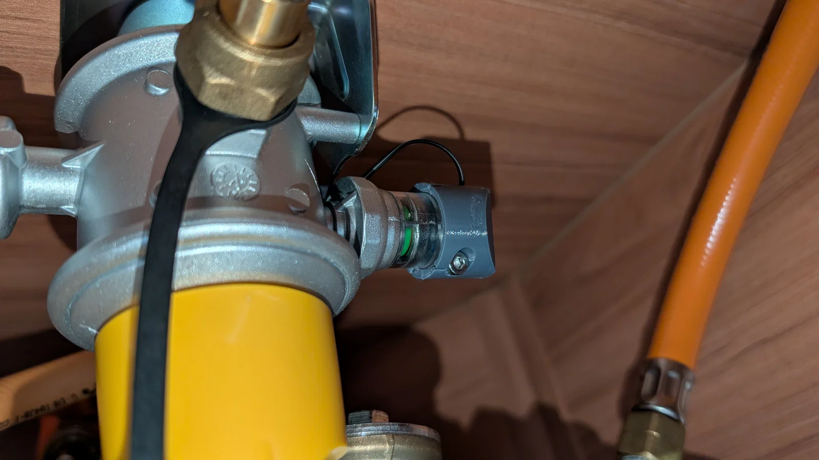 Lưu ý rằng trong không gian đặt bình ga, bạn phải tránh mọi nguồn gây đánh lửa. Đừng chỉ cắm trực tiếp công tắc vào nguồn 12V rồi xong việc. Cá nhân mình sử dụng cảm biến nước Aqara Zigbee để đọc trạng thái - nó bao bọc viên pin trong một vỏ kín nước (và khá kín khí), sử dụng điện áp thấp (~1.3 V) và cường độ dòng điện cực thấp (đo được là 0.0000001 A) để đảm bảo không thể xảy ra tia lửa điện.