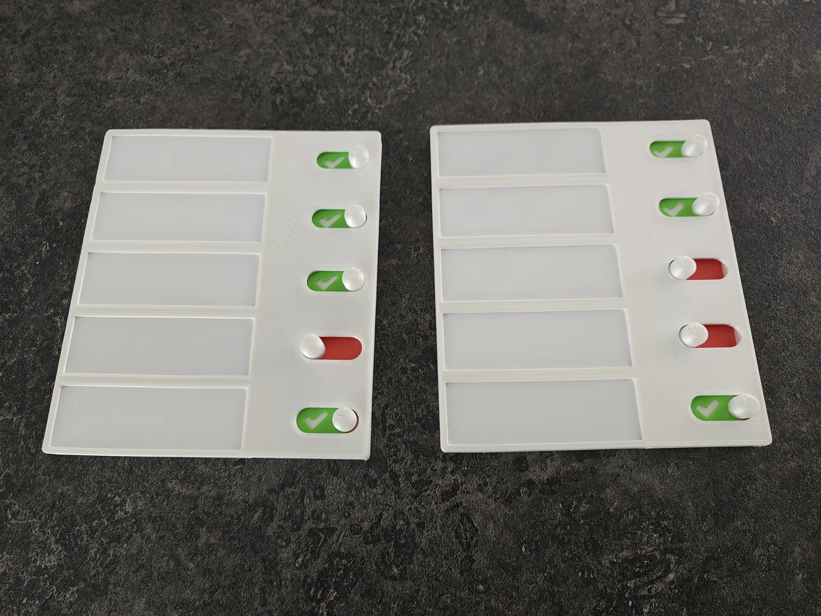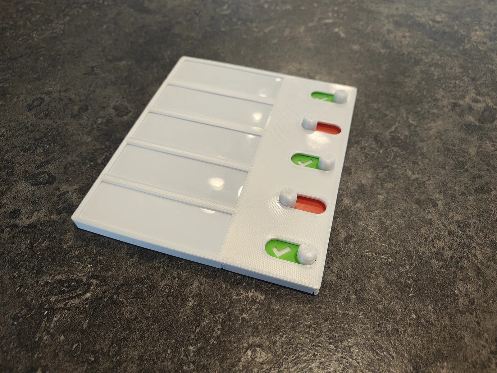 Mẫu checklist tiện lợi với cơ chế đóng mở bằng nam châm và các nhãn bảng trắng. Thiết kế tối ưu, in không cần support. Phù hợp để quản lý công việc hàng ngày một cách trực quan và thú vị. Bạn nên in bản test trước khi in toàn bộ mô hình.