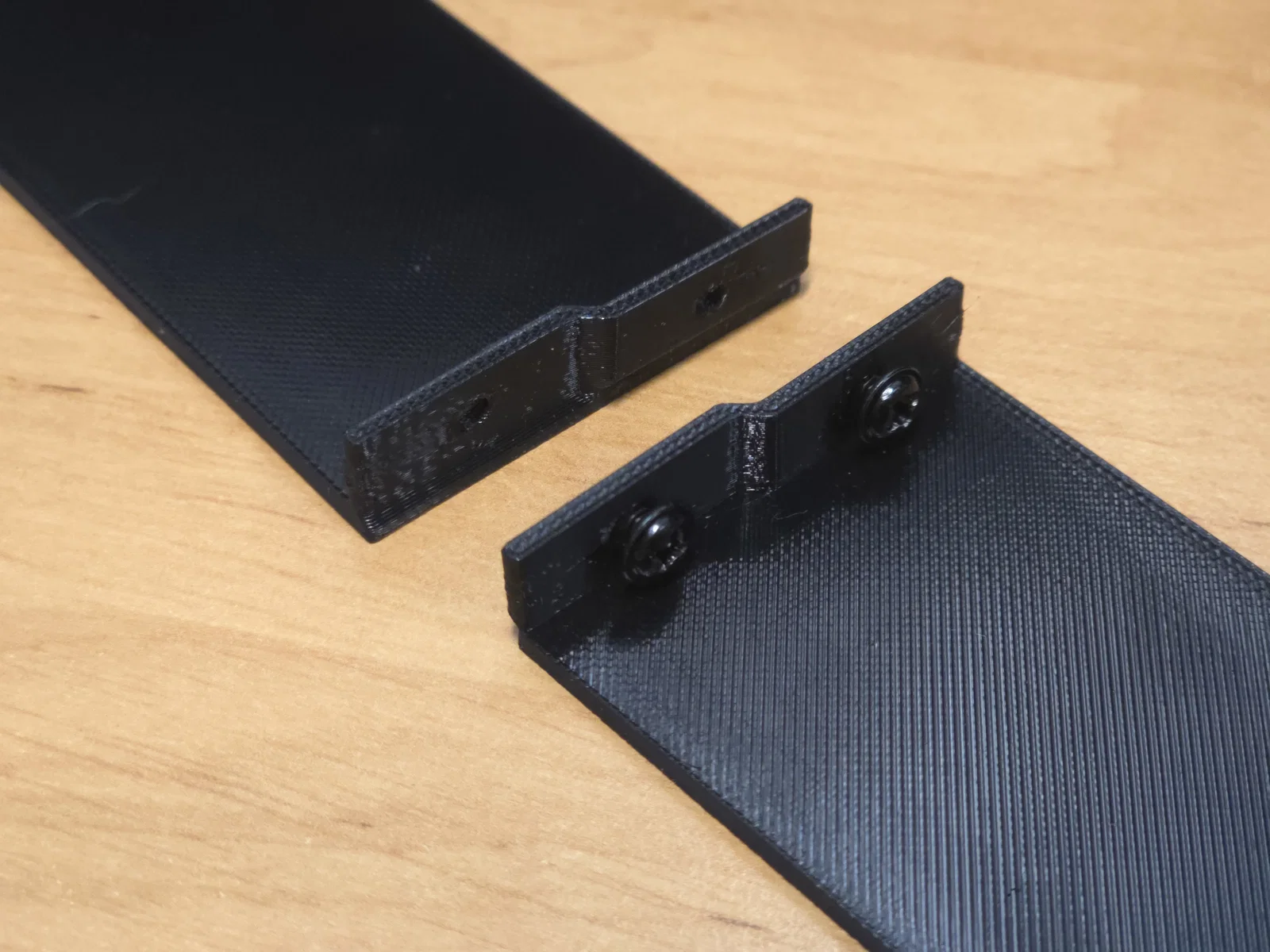 Đối với phiên bản dùng keo, mình đã thiết kế thêm các chốt và lỗ định vị để căn chỉnh cho chuẩn. Mình khuyên bạn nên dán một dải băng keo mỏng ngay đường nối để cố định và tránh keo tràn ra mặt trước làm hỏng bề mặt, sau đó chỉ cần dán tấm ghép nối lên trên và đè vật nặng lên để đảm bảo độ kết dính.