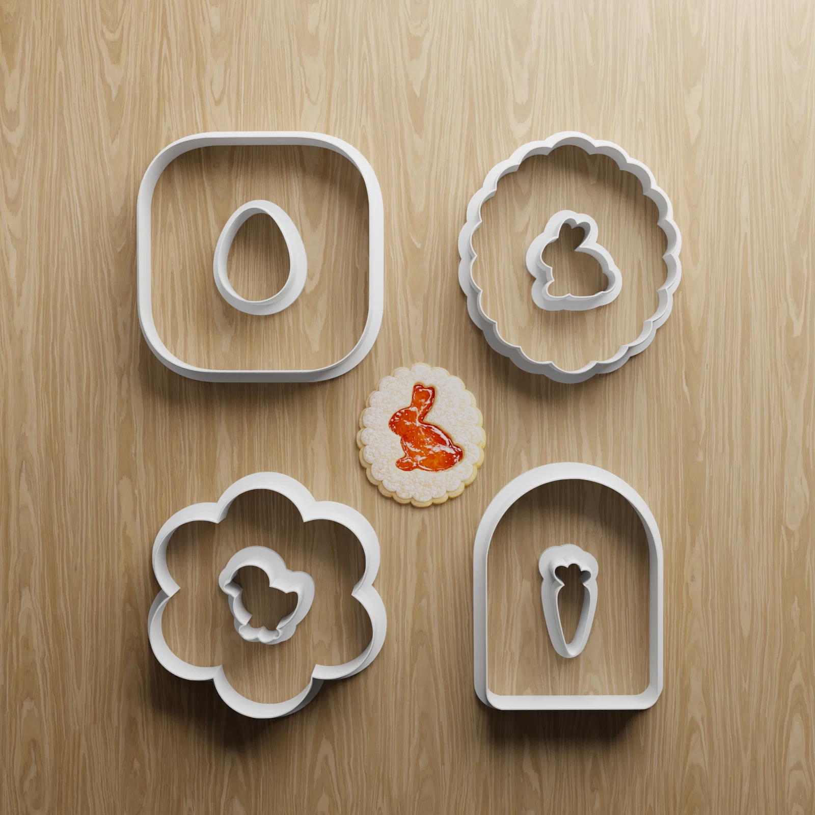 Bộ khuôn cắt bánh quy Linzer Phục sinh STL | Hình thỏ, trứng, cà rốt | In 3D