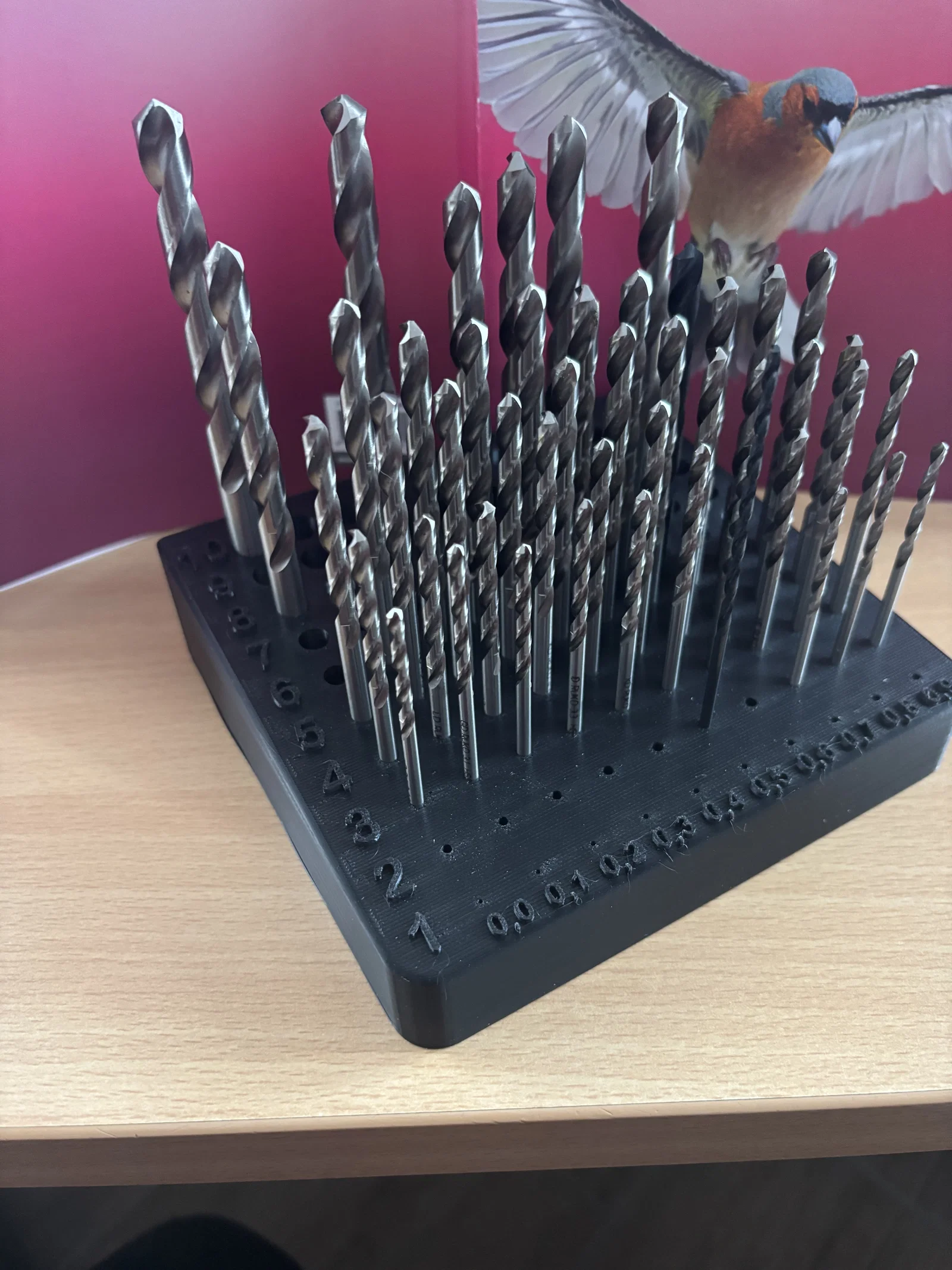 Nếu bác nào đang sở hữu một bộ sưu tập mũi khoan đồ sộ và luôn cảm thấy đau đầu vì cảnh lục lọi tìm đúng kích thước mỗi khi cần việc, thì chiếc khay đựng mũi khoan in 3D này chính là giải pháp cứu cánh tuyệt vời. Với thiết kế thông minh, sản phẩm giúp sắp xếp gọn gàng các mũi khoan có kích thước từ 1mm đến 10.9mm, giúp góc làm việc của bác luôn ngăn nắp và chuyên nghiệp hơn hẳn.