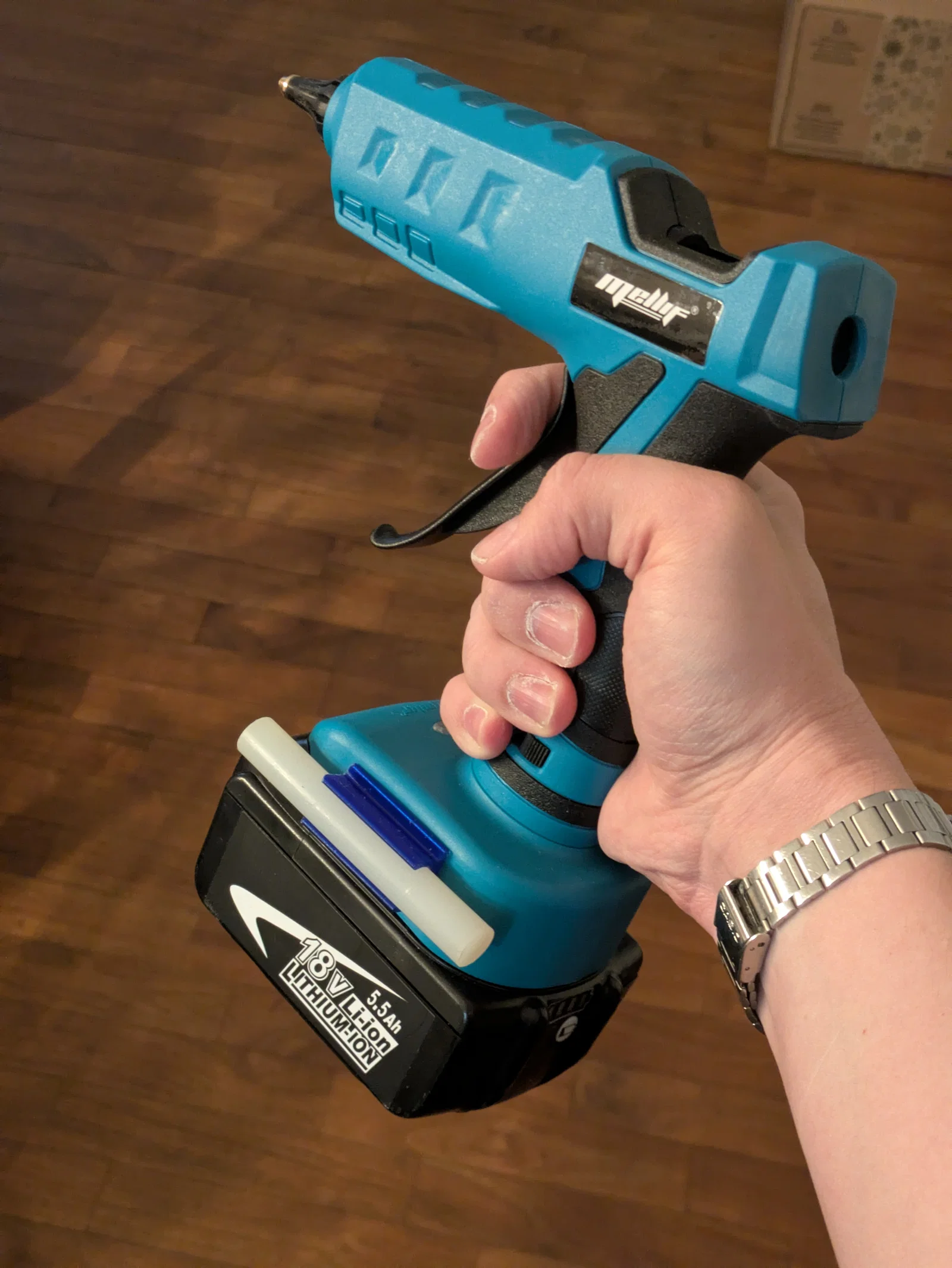 - Thiết kế tối ưu: Giá đỡ được thiết kế ôm sát vào phần pin của súng, đảm bảo thanh keo được giữ cố định, không bị rơi ra khi bạn di chuyển hoặc thao tác.