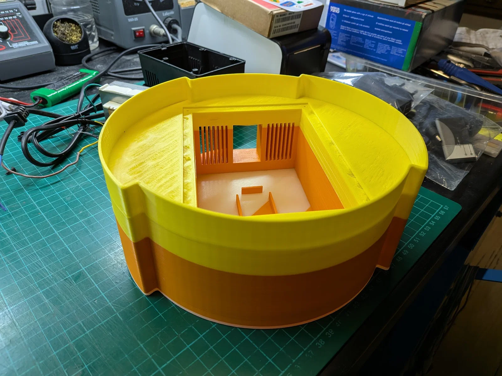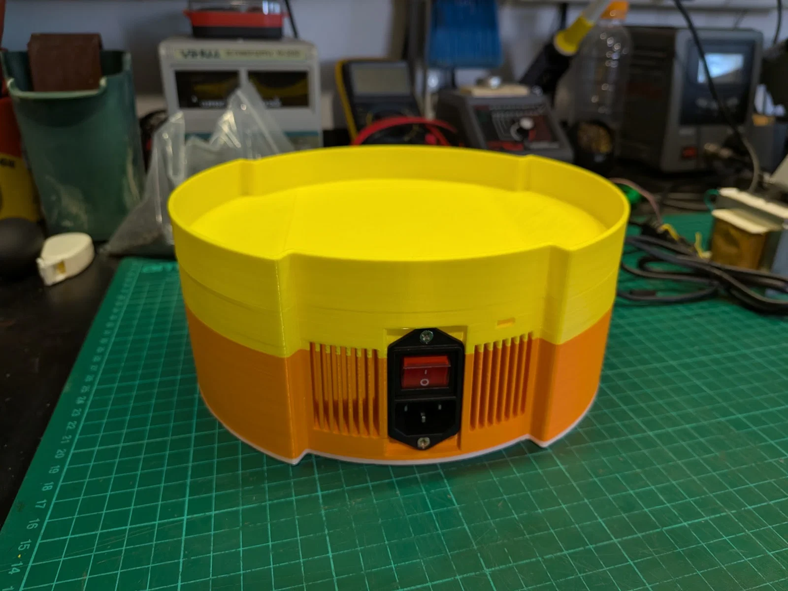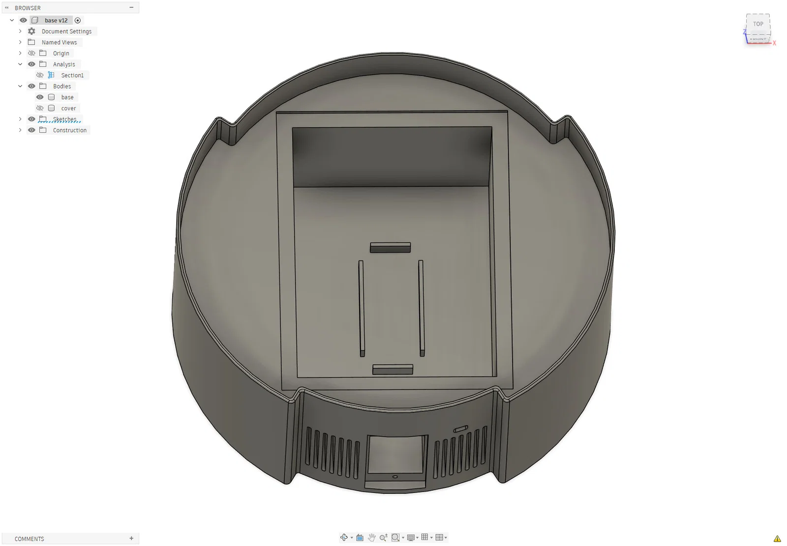 Phần đế này được thiết kế chuyên biệt để lắp vừa: Bộ chuyển đổi hạ áp LIAN LONG LLD150 (Đầu vào: 220-240VAC, Đầu ra: 110-120VAC, 150W). Kích thước đã được đo ni đóng giày cho loại converter này, nên anh em nhớ kiểm tra kỹ loại mình đang có hoặc chuẩn bị tinh thần chỉnh sửa lại file. Converter sẽ nằm gọn bên trong và phần đế cũng có khe đi dây điện rất ngăn nắp. Tôi đã đính kèm file gốc Fusion để bạn có thể tùy chỉnh cho đúng loại converter của mình.