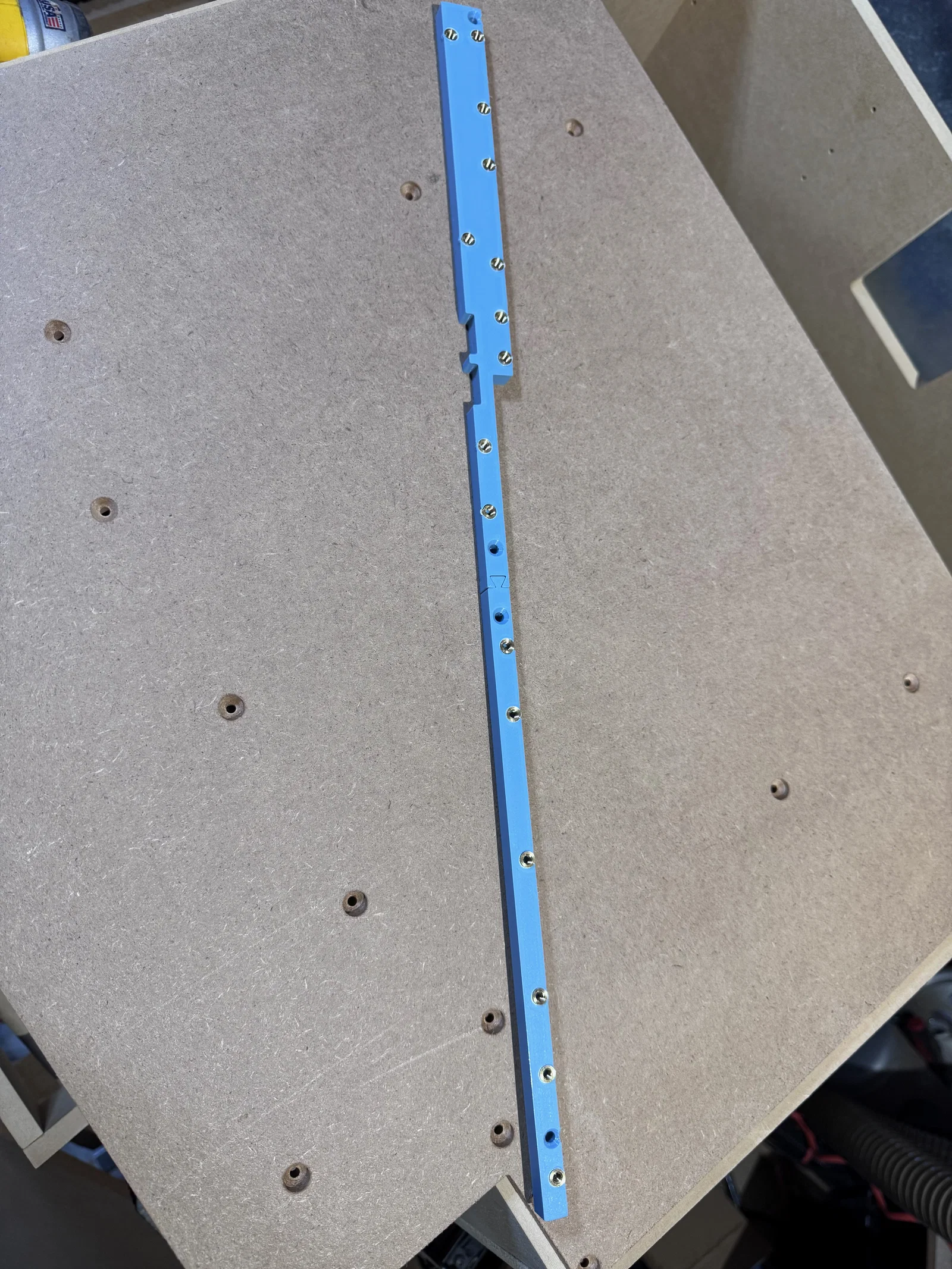 - Đương nhiên là nó không thể và thực tế là nó không chịu lực đó. Nó được bắt vít gỗ vào các thanh ray MDF từ mẫu gốc (nhớ trừ đi độ dày 10mm của mẫu in). Nó chỉ đóng vai trò giữ các insert đúng vị trí, hoàn toàn không chịu lực!