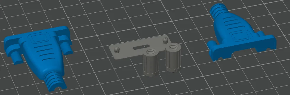 Mô hình phích cắm VGA giả này gồm 5 bộ phận chính. Bạn chỉ cần đặt cáp USB-C vào trong vỏ, cố định bằng ốc vít hai bên và nhấn tấm đệm ở đáy vào là hoàn tất việc lắp ráp.