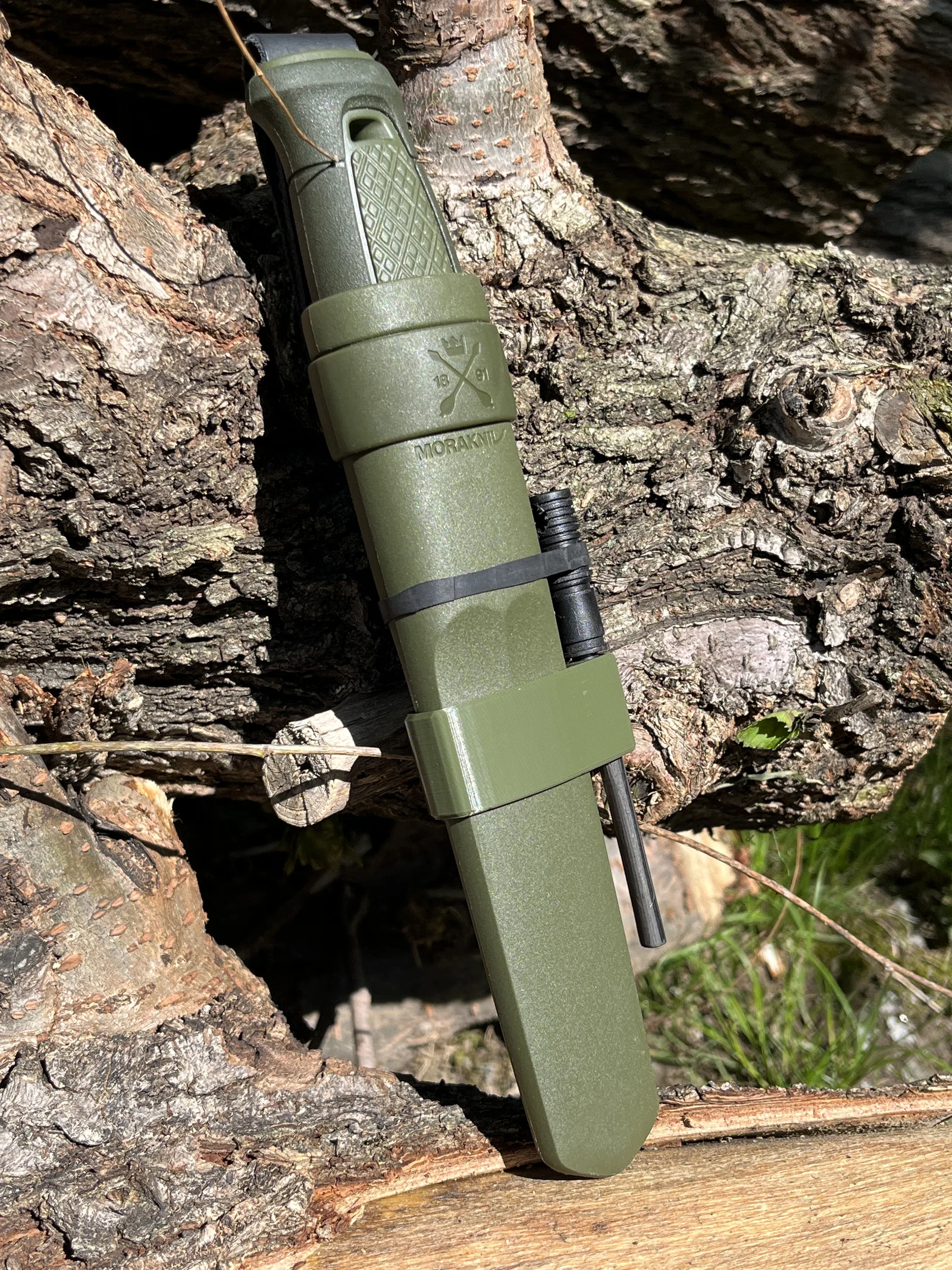 Đây là giá đỡ firesteel 6mm đơn giản dành cho bao đựng Morakniv Kansbol cơ bản, chỉ cần nhấn để khớp vào khe ở mặt sau của bao. Trong hình, firesteel được giữ cố định bằng dây thun cắt từ ruột xe đạp cũ. Bạn nên in với 10 perimeters để chi tiết đạt độ cứng cáp tốt nhất, khuyến khích sử dụng vật liệu PETG.