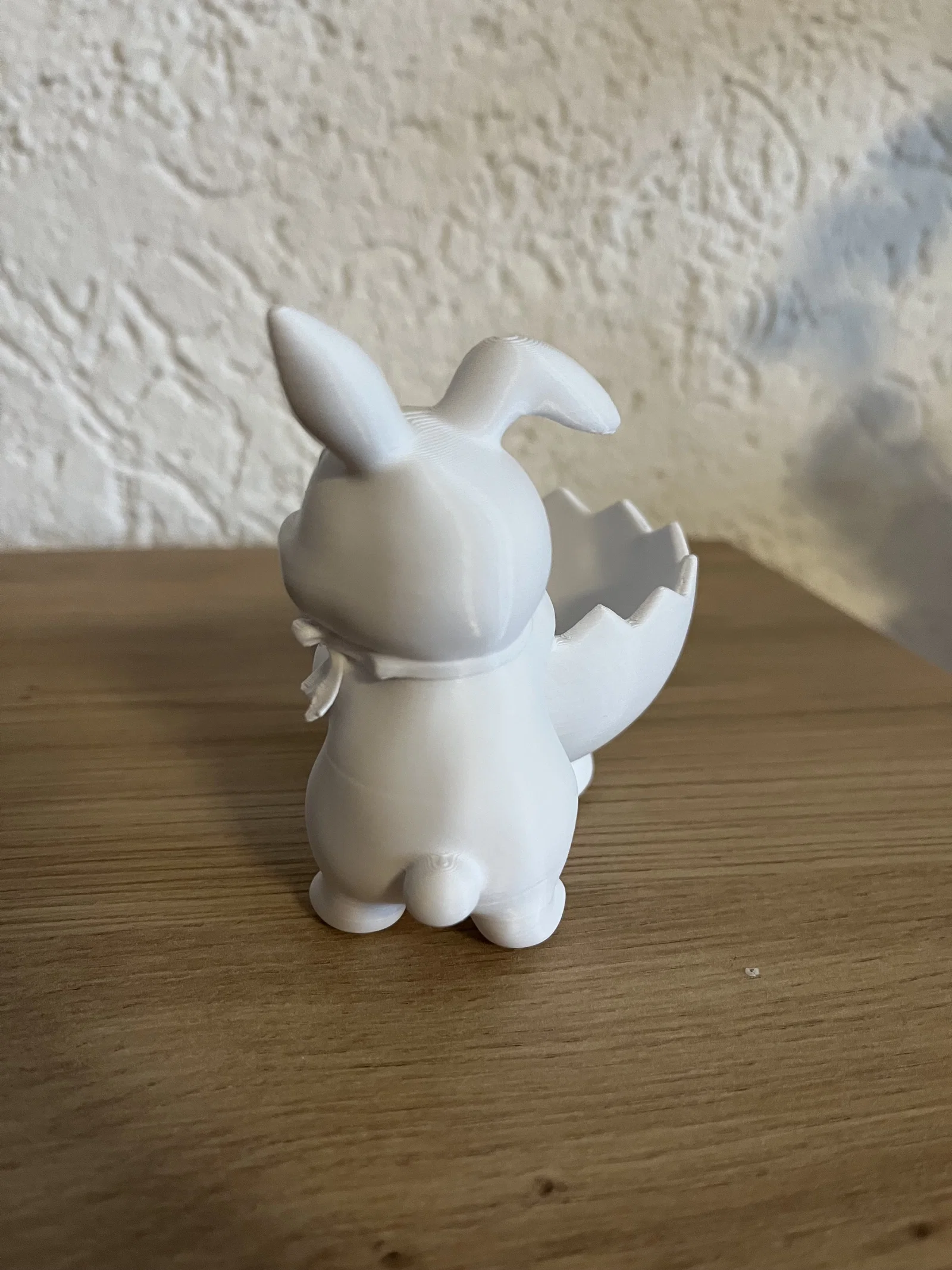 Thiết kế đầy ngẫu hứng này kết hợp giữa sự hài hước và không khí Phục sinh cổ điển, tạo nên một vật phẩm trang trí hoàn hảo cho bàn tiệc Phục sinh, một món quà theo mùa xinh xắn hoặc một điểm nhấn bắt mắt cho mùa xuân. Chi tiết vỏ trứng nghiêng tạo thêm vẻ sống động, giúp chú thỏ trở nên có hồn và thu hút hơn.