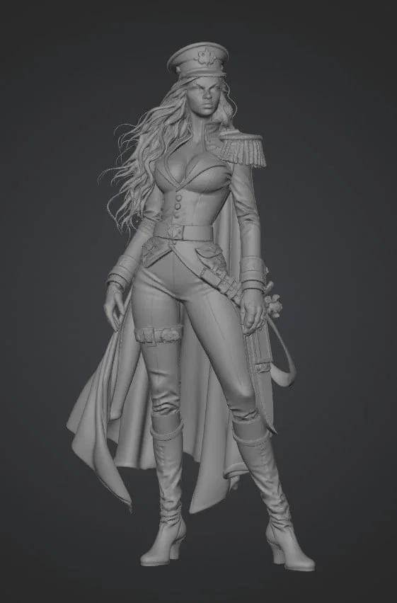 Mẫu mô hình 3D "Nữ Đại úy Crimson" là một tác phẩm điêu khắc kỹ thuật số cực kỳ chi tiết, khắc họa hình ảnh một nữ chỉ huy đầy uy quyền và phong thái mạnh mẽ. Với thiết kế trang phục lấy cảm hứng từ quân đội, từ chiếc mũ kê-pi đặc trưng, cầu vai trang trí tỉ mỉ cho đến lớp áo khoác dài bay bổng, mô hình này mang lại cảm giác sống động và chân thực cho bất kỳ bộ sưu tập figure nào. Đây là lựa chọn hoàn hảo cho những ai đam mê thể loại mô hình nhân vật, đặc biệt là những người yêu thích sự kết hợp giữa nét quyến rũ và vẻ nghiêm nghị của hình tượng nữ tướng quân.