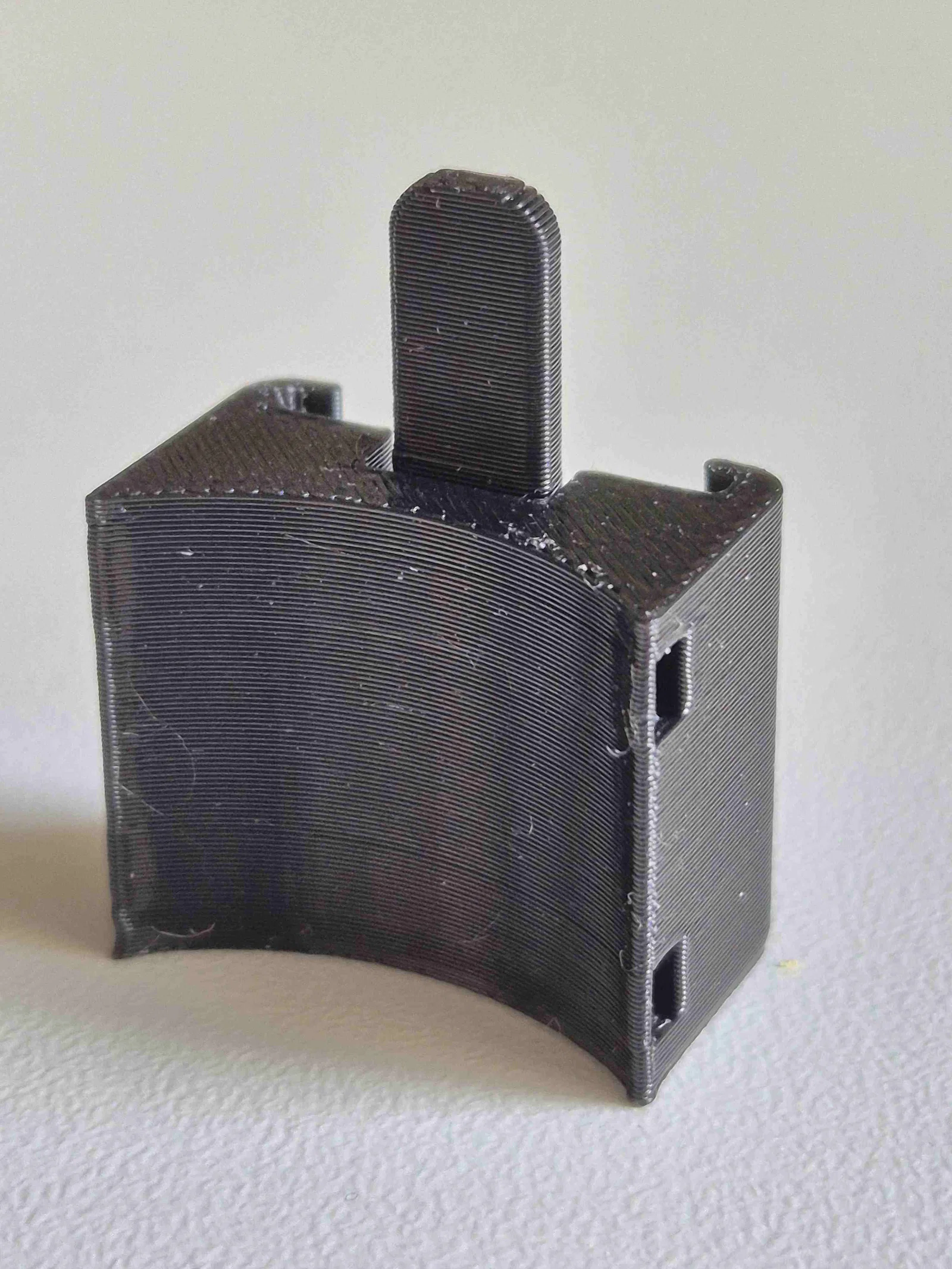 Đây là ngàm gắn cho đèn hậu có chức năng đèn phanh, được thiết kế để gắn vào cọc yên xe đạp. Ngàm được cố định chắc chắn bằng dây rút nhựa. Mình đã sử dụng nhựa PETG để in mà không cần cài đặt gì đặc biệt. Vì nhựa PETG thường có độ co ngót nhất định, nên mình đã bù trừ bằng cách tăng nhẹ kích thước thiết kế. Bạn cứ thoải mái điều chỉnh lại file FreeCAD nếu cần thiết nhé.