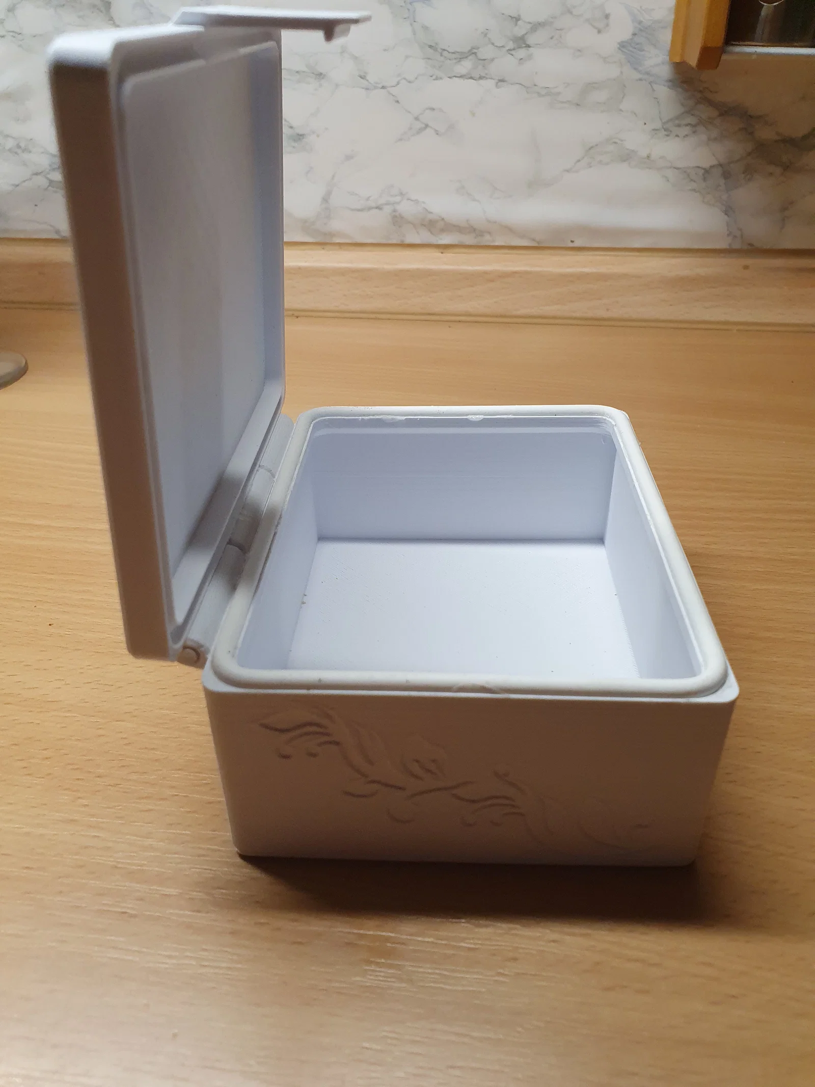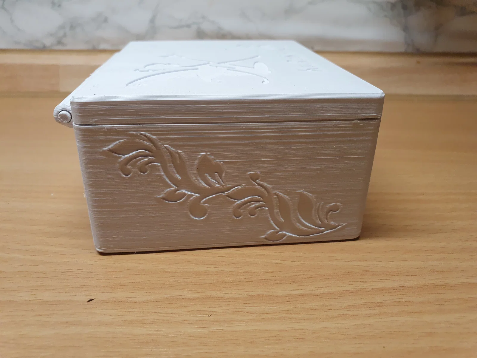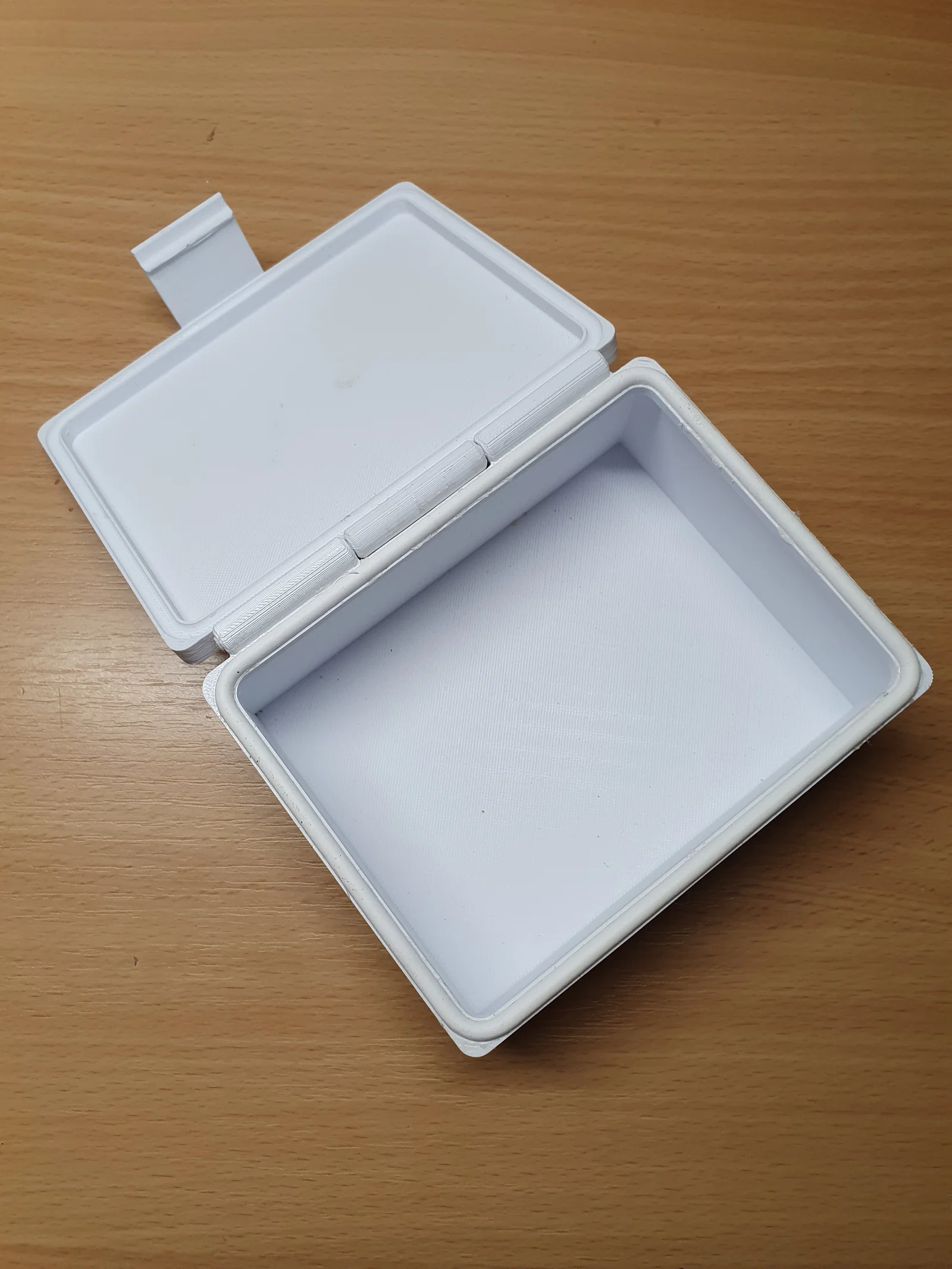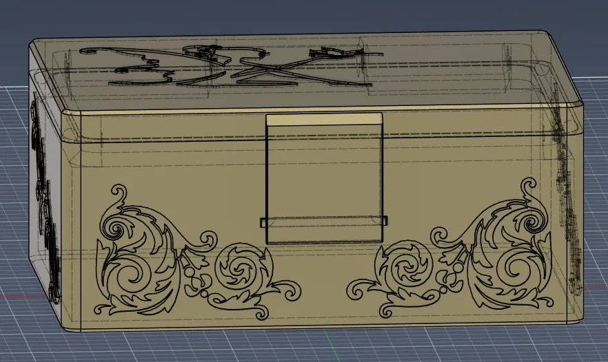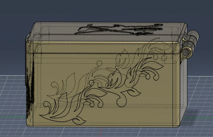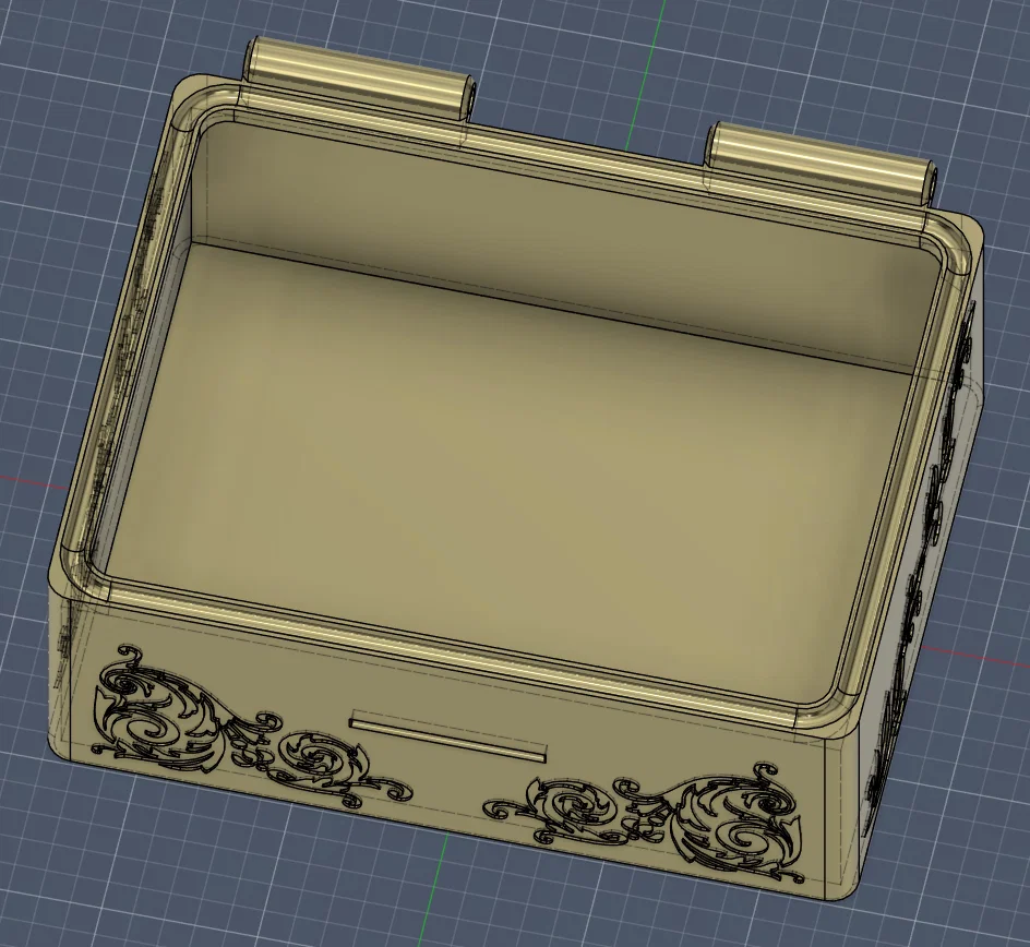 Mô hình này bao gồm 3 phần: thân hộp, nắp hộp và một thanh nối bản lề. Tất cả các bộ phận đều có thể in được mà không cần dùng support.
