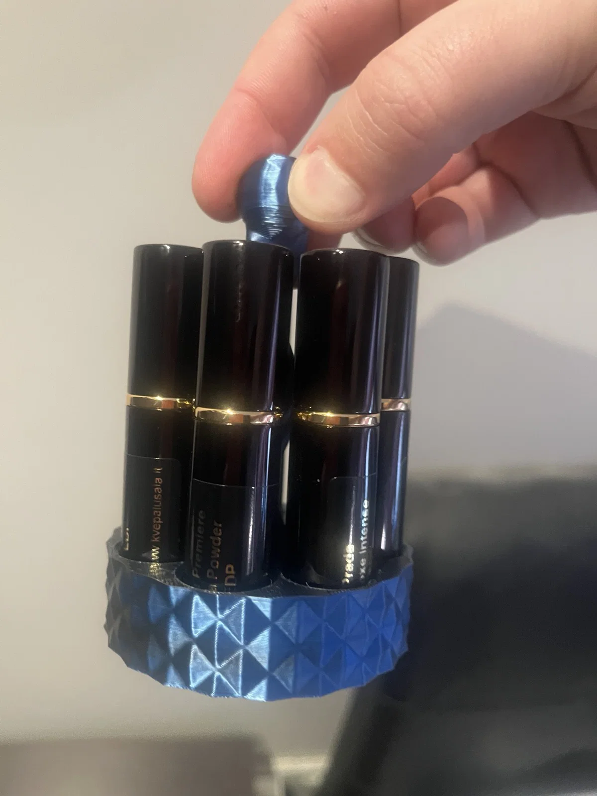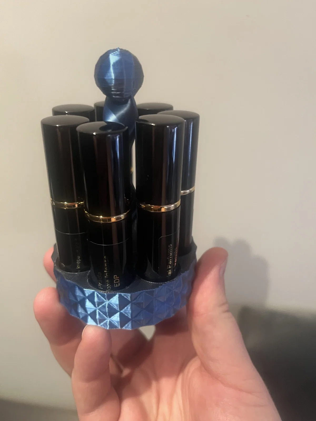 Bạn đang tìm kiếm một phụ kiện độc đáo để sắp xếp những chai nước hoa yêu thích của mình một cách gọn gàng và thẩm mỹ? Hãy thử ngay mẫu khay đựng nước hoa Stylish Parfume holder với thiết kế hình ảnh ổ đạn revolver đầy ấn tượng. Không chỉ tiện lợi với sức chứa lên tới 7 chai nước hoa dạng ống, sản phẩm còn sở hữu bề mặt họa tiết kim cương tinh xảo, tạo điểm nhấn sang trọng cho bàn trang điểm. Sản phẩm được thiết kế tối ưu cho in 3D, hỗ trợ tùy chỉnh thông số linh hoạt qua OpenSCAD để phù hợp với kích thước chai riêng biệt của bạn. Đây là sự kết hợp hoàn hảo giữa công nghệ in 3D hiện đại và sự ngăn nắp trong đời sống hằng ngày, giúp không gian làm đẹp của bạn trở nên khoa học và đẳng cấp hơn bao giờ hết.