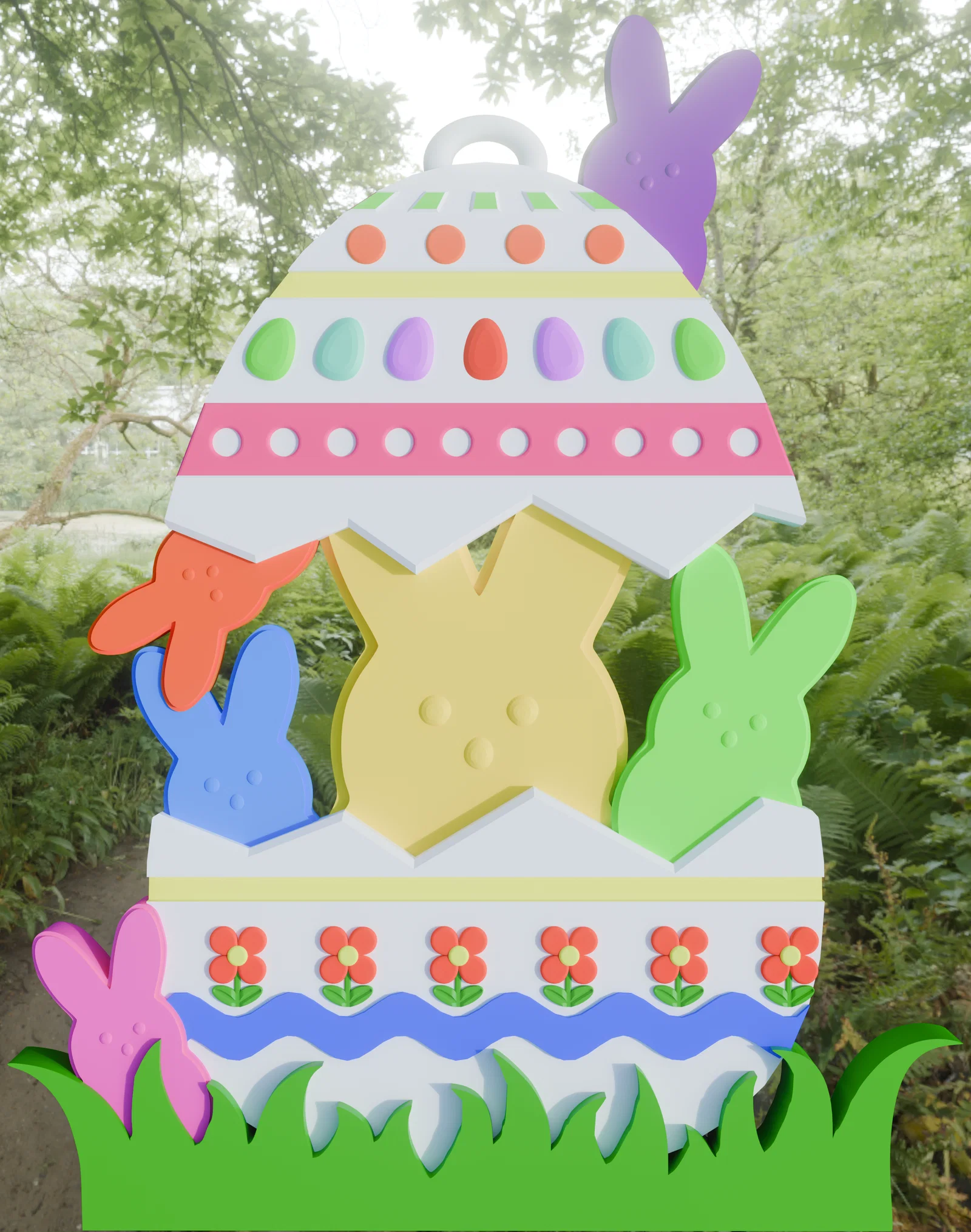 Bạn đang tìm kiếm một món đồ trang trí độc đáo và đầy màu sắc để làm bừng sáng không gian sống trong dịp lễ Phục sinh sắp tới? Mẫu thiết kế 3D "Easter Bunny Door Decoration" này chính là lựa chọn tuyệt vời dành cho bạn. Sản phẩm mô phỏng một quả trứng Phục sinh khổng lồ được cách điệu, với những chú thỏ đáng yêu đang vui đùa bên trong và xung quanh bãi cỏ xanh mát. Đây không chỉ là món đồ treo cửa đơn thuần mà còn là điểm nhấn đầy tinh tế, mang lại không khí vui tươi, ấm áp cho ngôi nhà của bạn mỗi khi khách ghé thăm.