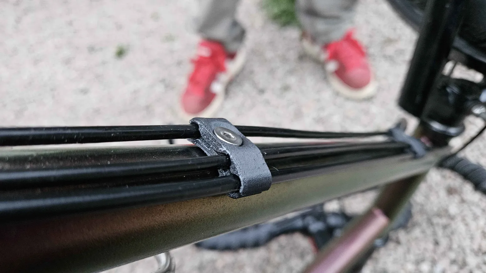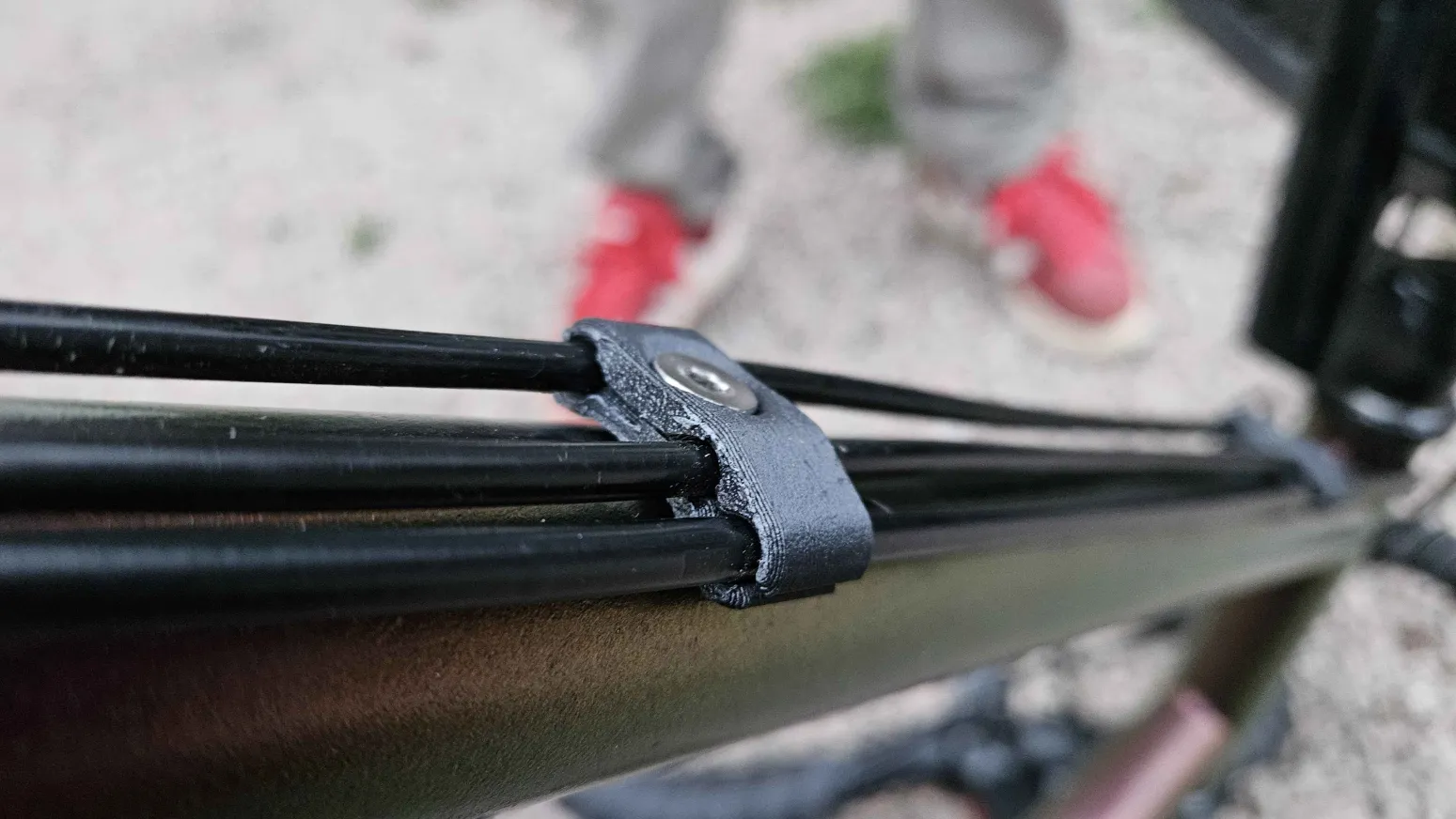 Kẹp giữ dây cáp xe đạp cho 2, 3 và 4 dây. Các kẹp có đường kính 5mm, được thiết kế cho khung xe có đường kính ống khoảng 35mm. Tôi không nghĩ ra nhiều lý do tại sao bạn cần đến 4 dây cáp, nhưng nếu cần thì thiết kế này đã có sẵn. Chiếc kẹp màu đen có gắn bu lông chính là phiên bản kim loại mà tôi dựa vào để tạo ra thiết kế này. Tôi đã in bằng chất liệu ASA-CF và thấy nó vẫn đang hoạt động rất tốt cho đến hiện tại.
