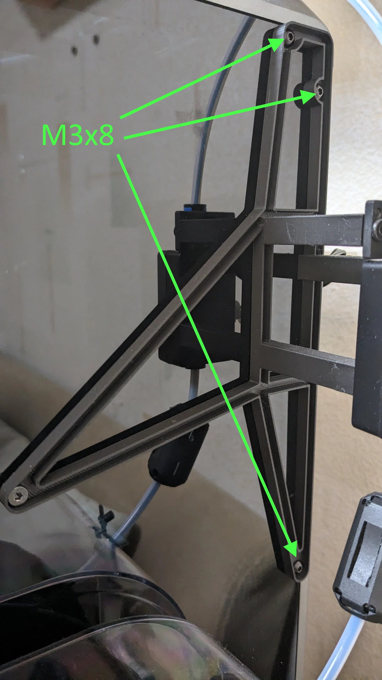 Để lắp đặt, bạn cần chuẩn bị thêm 3 con ốc M3x8 (tối thiểu là M3x6), xem thêm hình có đánh dấu mũi tên nhé. Các vị trí còn lại đều dùng ốc zin theo máy.