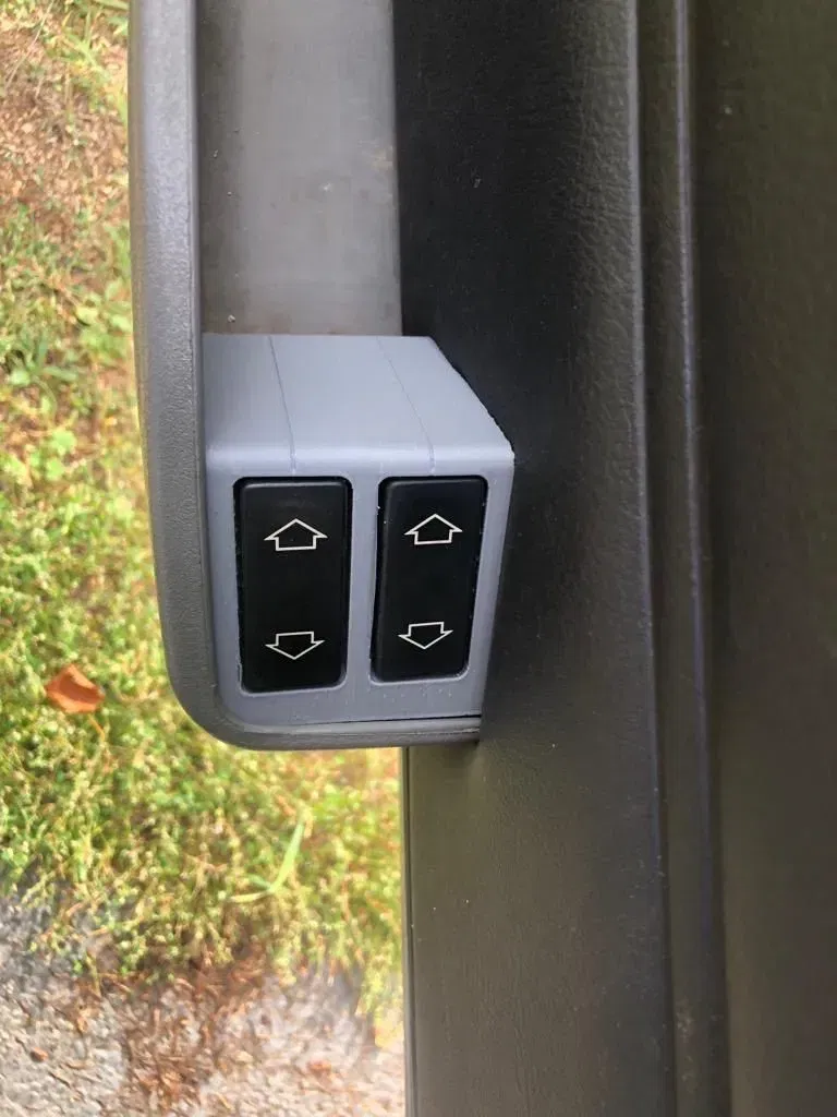 Bìa giữ công tắc điều chỉnh cửa sổ ở cửa trước của Peugeot 205 (1983-1998), được thiết kế ban đầu cho một chiếc xe sản xuất năm 1991.