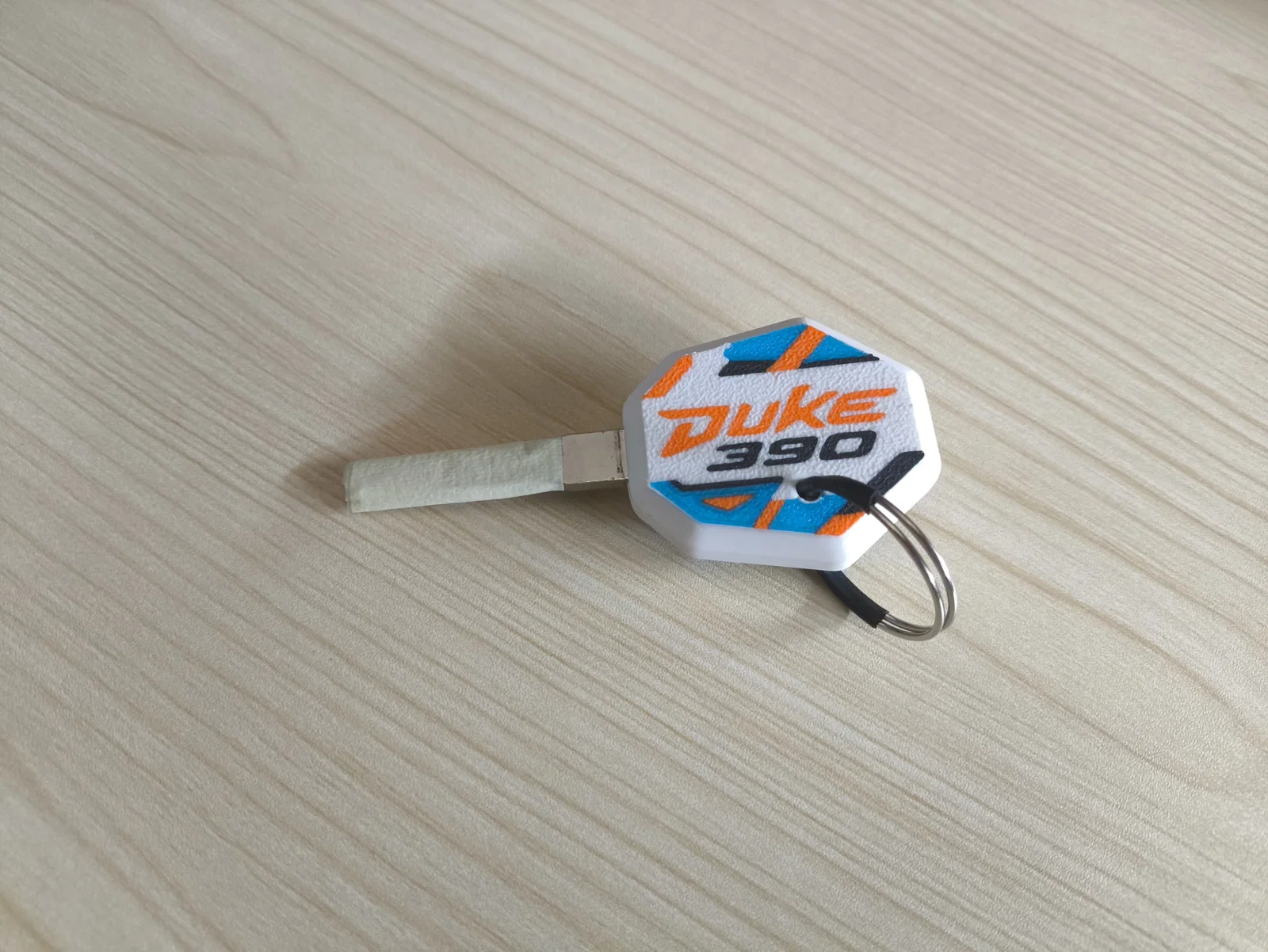 Đây là mẫu ốp khóa tùy chỉnh được thiết kế riêng cho dòng xe KTM Duke 390 đời 2021, đảm bảo ôm sát và bảo vệ chìa khóa của bạn. Mình đã dùng băng keo giấy dán lên cả chìa khóa và phần nắp trên để đảm bảo độ khít và tránh trầy xước trong quá trình thử nghiệm, mặc dù hình ảnh lúc lắp ráp thì chưa có chụp lại. Hai mảnh ốp có thể gắn kết chặt chẽ với nhau bằng một giọt keo nhỏ ở các góc, nhưng lưu ý là nếu muốn tháo ra thì phải kiên nhẫn và dùng kìm hỗ trợ. Chìa khóa vẫn xỏ vừa qua lỗ móc khóa zin như bình thường, các bạn cứ nên thử cắm vào xe để đề máy kiểm tra xem vừa vặn không trước khi quyết định dán keo cố định nhé.