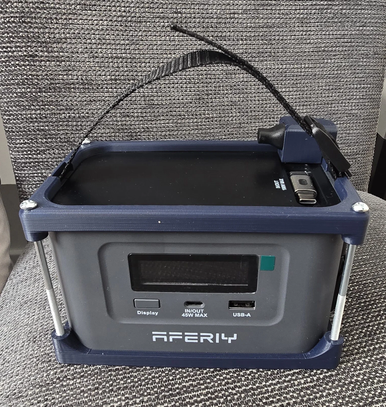 Đây là khung gồm hai mảnh dùng để lắp vào sạc dự phòng Aferiy Nano, giúp bạn gắn thêm dây đeo và có nơi cất giữ bộ chuyển đổi năng lượng mặt trời.