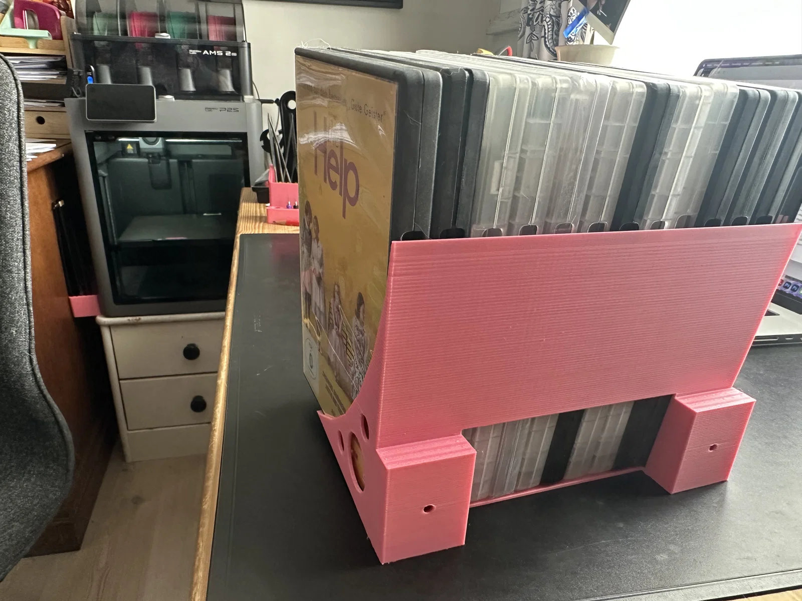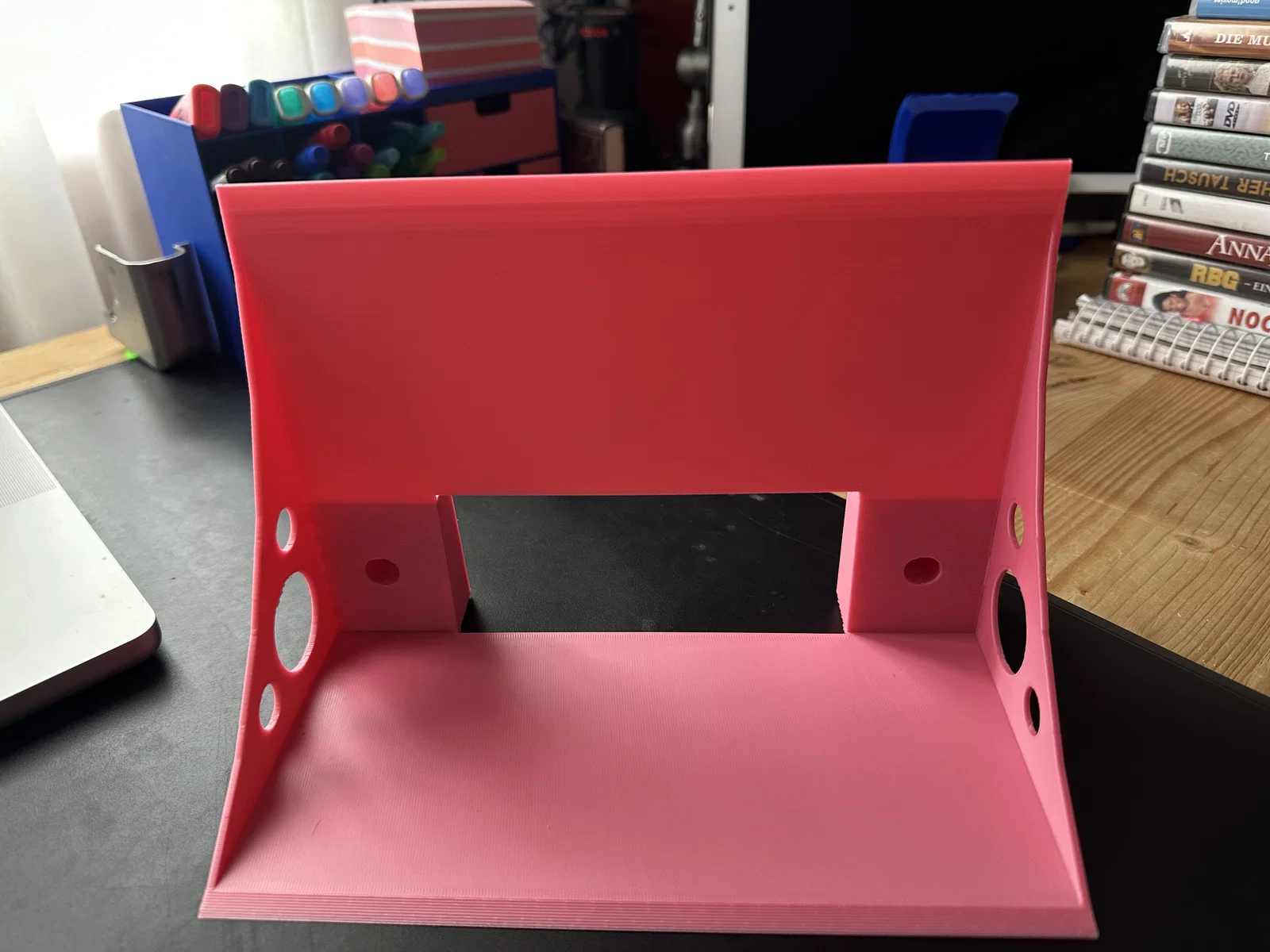 Mẫu kệ đựng đĩa DVD thiết kế đơn giản, gắn tường tiện lợi với độ nghiêng 5 độ để giữ đĩa chắc chắn. Sản phẩm có hai kích thước 20cm và 25cm, tối ưu khi in bằng nhựa PLA với hỗ trợ cục bộ.