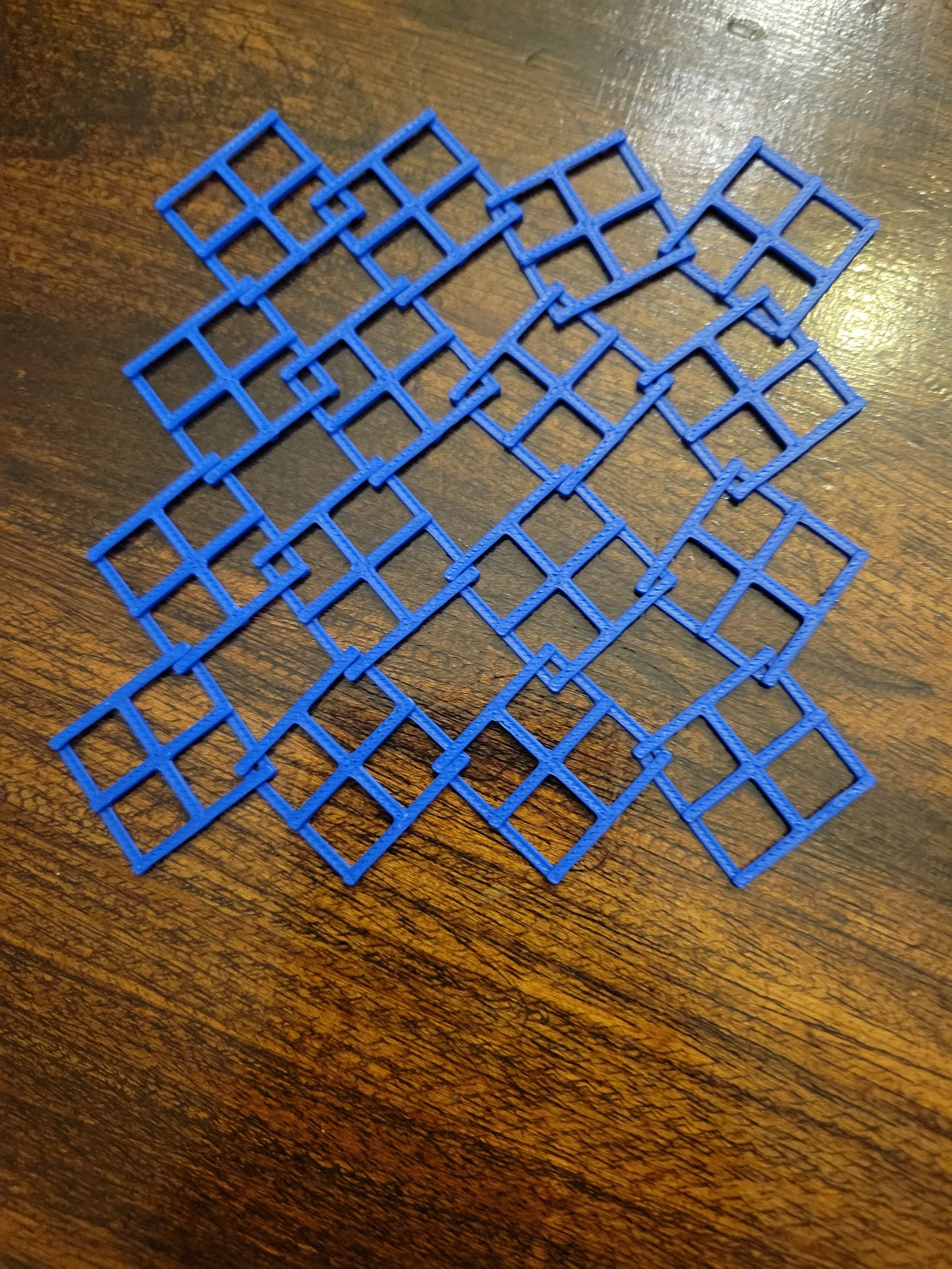 Cấu trúc của mô hình bao gồm các mắt lưới hình vuông liên kết chặt chẽ với nhau, tạo ra một bề mặt có khả năng uốn cong và chuyển động mềm mại như vải thật. Bạn có thể cầm nắm, bóp, hay vo tròn trong lòng bàn tay để giải tỏa căng thẳng sau những giờ làm việc mệt mỏi. Chính nhờ tính chất linh hoạt này, mẫu in thử nghiệm này còn giúp người dùng hiểu rõ hơn về cách các cấu trúc khớp nối (interlocking joints) hoạt động trong không gian 3D.