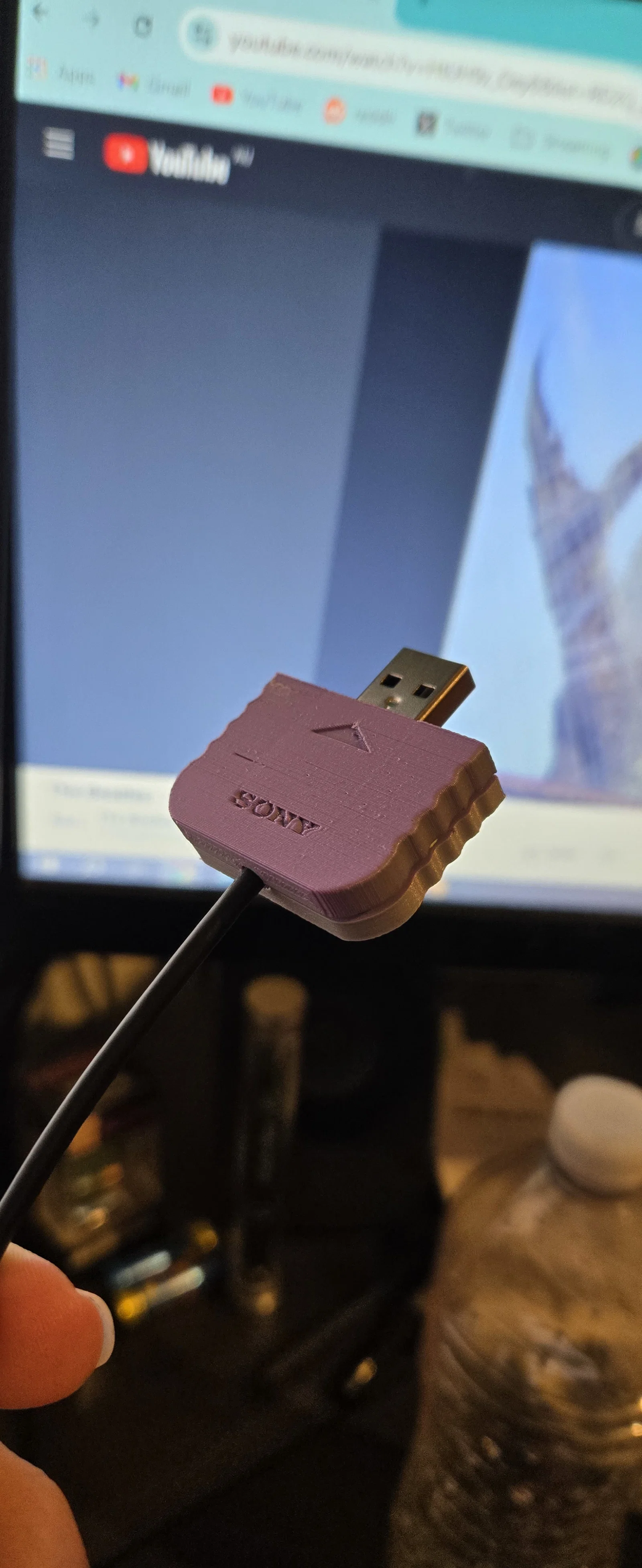 Phụ kiện trang trí đầu cáp USB A - USB C đi kèm với tay cầm PS5 Dualsense theo phong cách PS1. Thiết kế đơn giản, dễ in, giúp dây cáp của bạn mang đậm nét hoài cổ.