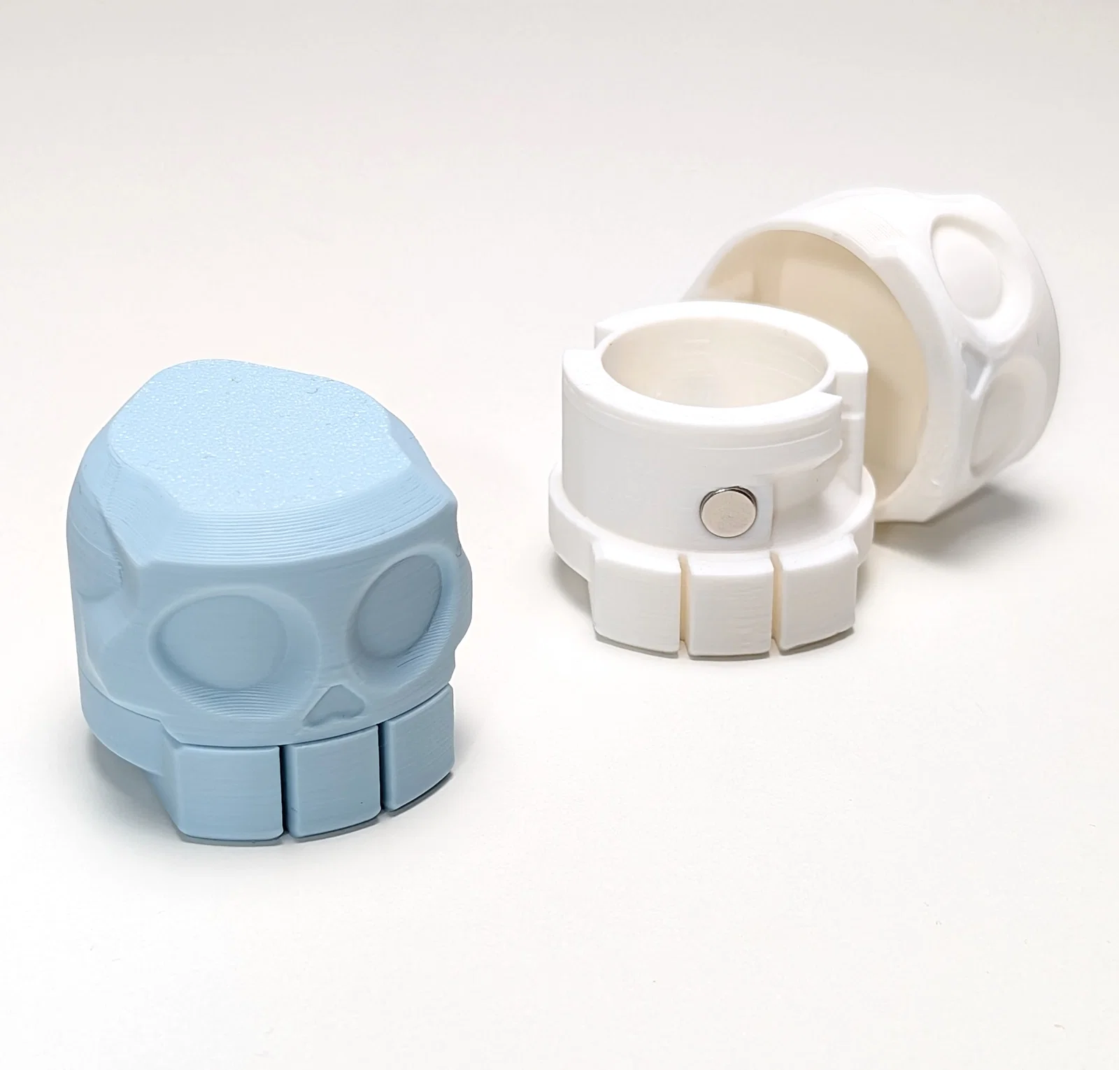 Một chiếc hộp đựng hình đầu lâu nhỏ gọn với cơ chế khóa xoay từ tính cực kỳ tiện lợi. Thiết kế không cần dùng support, dễ dàng lắp ráp và là phụ kiện trang trí bàn làm việc cực chất cho những ai yêu thích in 3D.