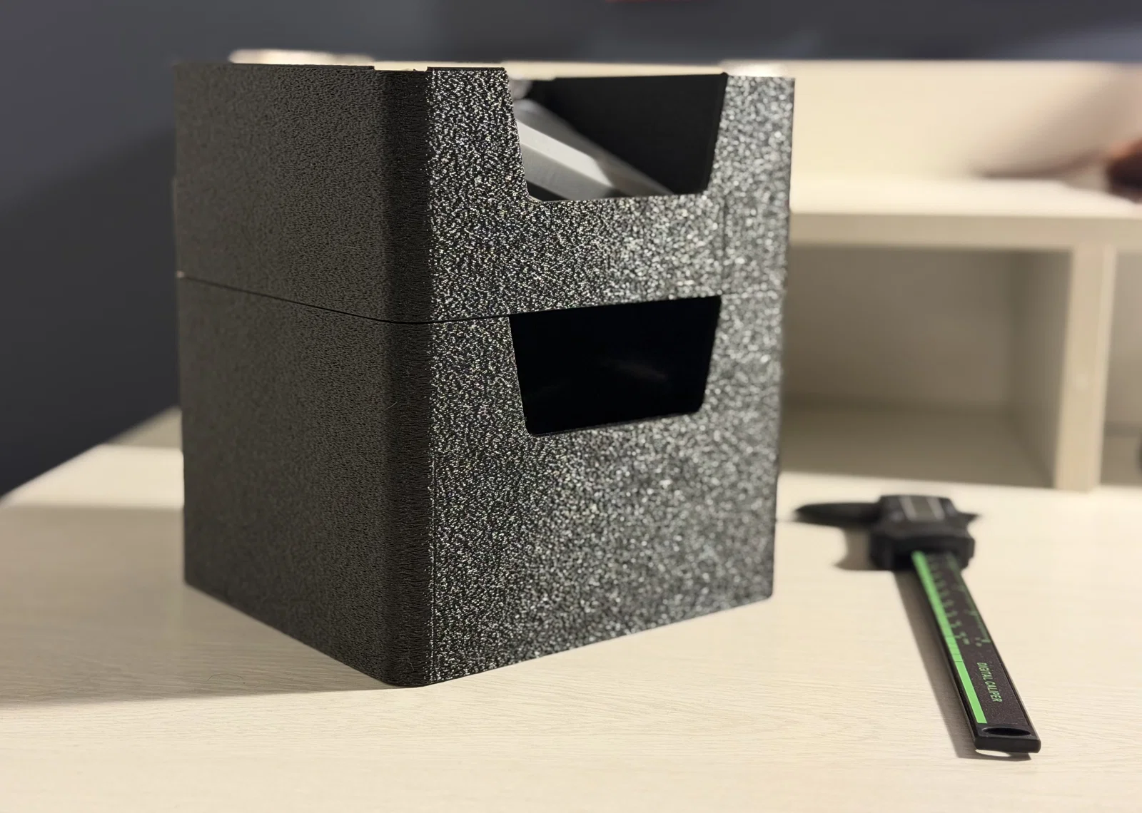 Các hộp này trông rất đẹp khi in bằng tính năng 'fuzzy skin'. Mình đã in với layer height 0.2, tuy nhiên các khớp nối xếp chồng có thể sẽ khớp tốt hơn nếu bạn dùng layer height 0.15 hoặc 0.10.