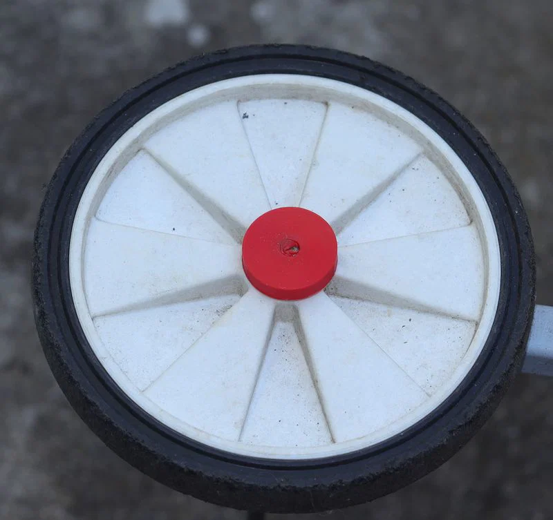 Cái đai ốc bánh xe trên chiếc xe đẩy đồ giặt cũ của mình bị rơi mất tiêu đâu đó giữa chỗ phơi đồ với cửa sau. Mình có tìm thử một chút nhưng không thấy đâu hết.
