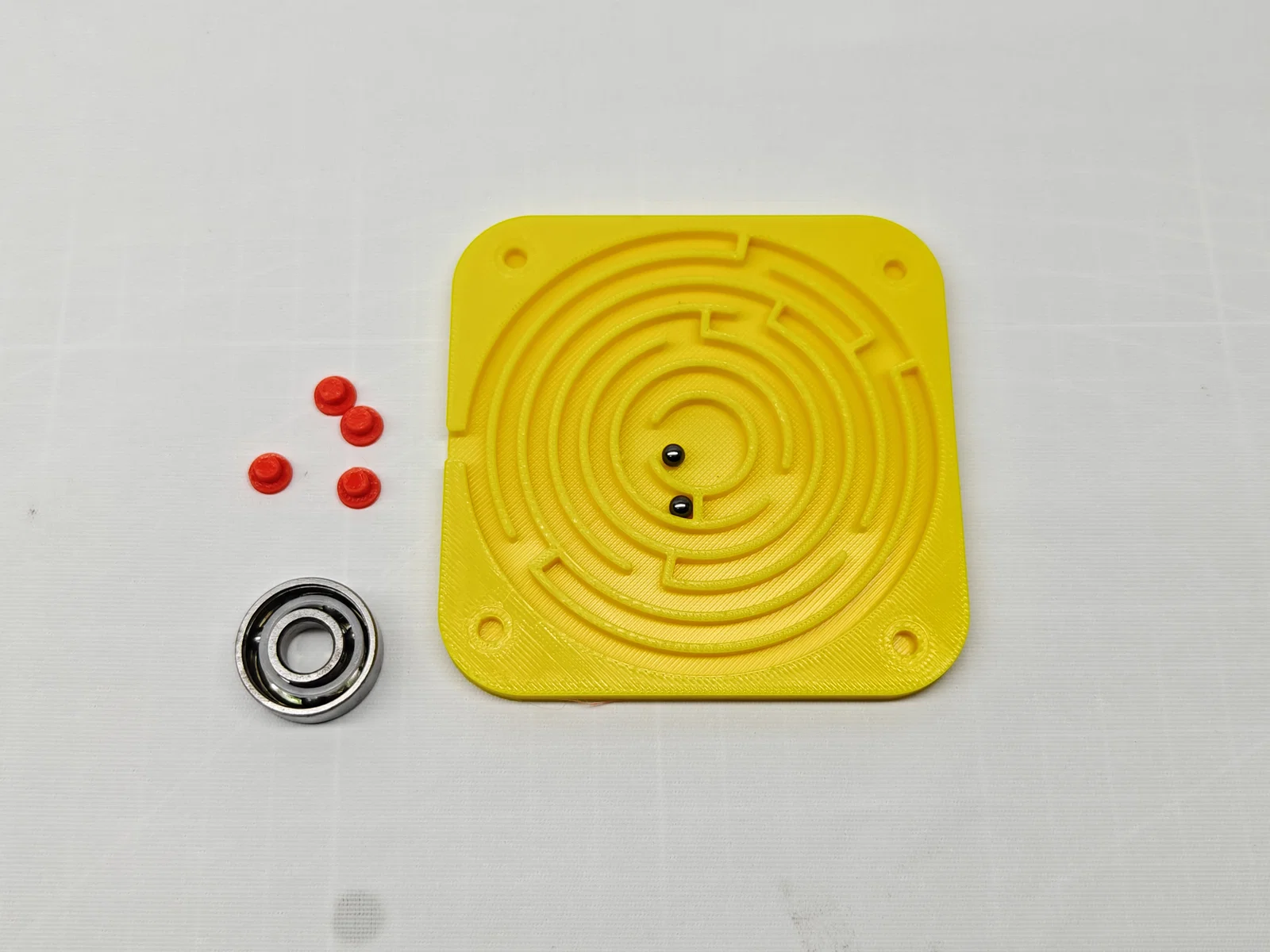 Sau khi in xong, bạn không cần lắp ráp thêm gì cả. Bạn chỉ cần chuẩn bị một viên bi nhỏ có đường kính từ 3–4.5 mm. Bạn có thể dùng bi thủy tinh, bi thép hoặc in nhựa, nhưng nếu in nhựa thì cần phải chà nhám để bi lăn tốt hơn. Mô hình có sẵn các lỗ và chốt để gắn tấm chắn trong suốt. Bạn có thể tận dụng tấm acrylic, màng PET hoặc các loại bao bì trong suốt cứng cáp để làm nắp đậy. Mô hình được thiết kế để in đơn sắc rồi sơn thủ công, nhưng nếu có máy in đa màu thì bạn hoàn toàn có thể in nhiều màu trực tiếp.
