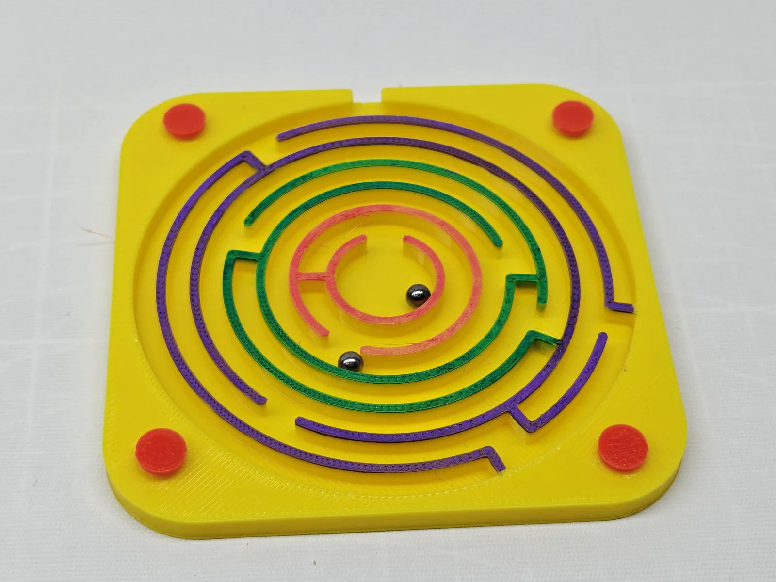 Món đồ chơi mê cung cầm tay này có đường chạy xoắn ốc nhiều tầng, được thiết kế để rèn luyện sự phối hợp giữa tay và mắt cũng như tư duy không gian thông qua việc điều khiển các viên bi về đích.