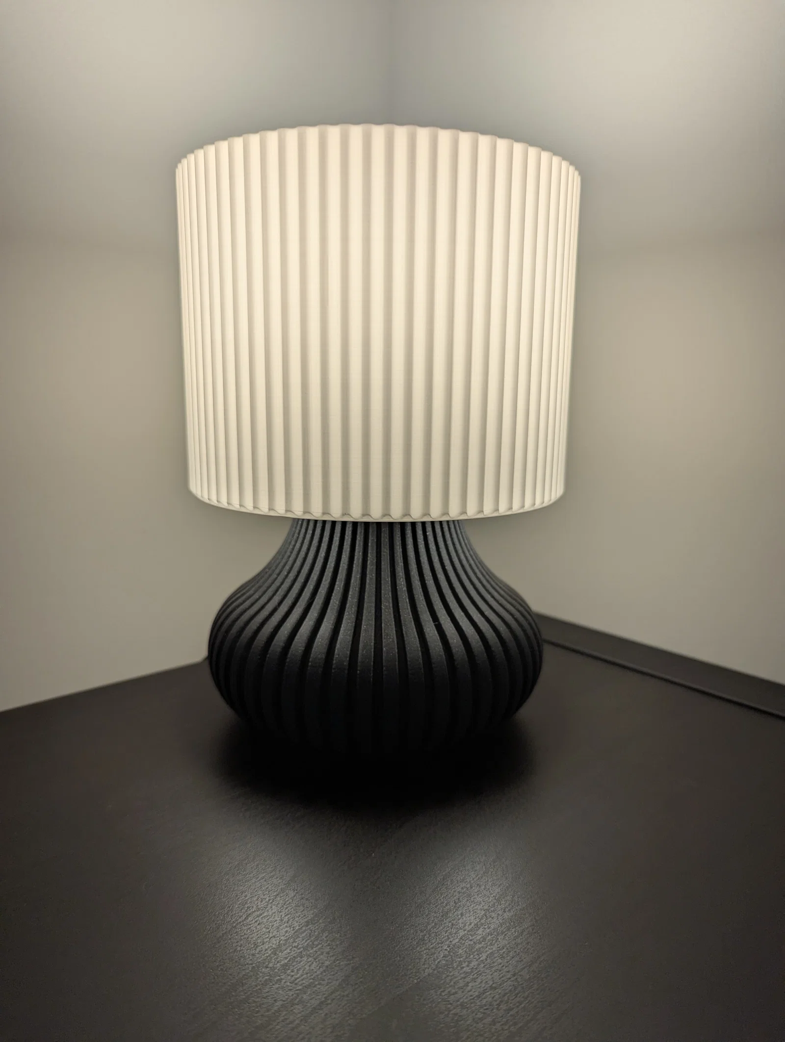 Sản phẩm được thiết kế tối ưu cho việc in 3D, với cấu trúc vững chãi để nâng đỡ phần chụp đèn phía trên. Sự kết hợp giữa phần chân đế tối màu và chụp đèn sáng màu tạo nên vẻ ngoài hài hòa, hiện đại, dễ dàng phối hợp với nhiều phong cách nội thất khác nhau từ tối giản đến cổ điển. Bạn hoàn toàn có thể tự tay tạo ra một chiếc đèn để bàn xinh xắn, mang đậm dấu ấn cá nhân mà không cần tốn quá nhiều chi phí.