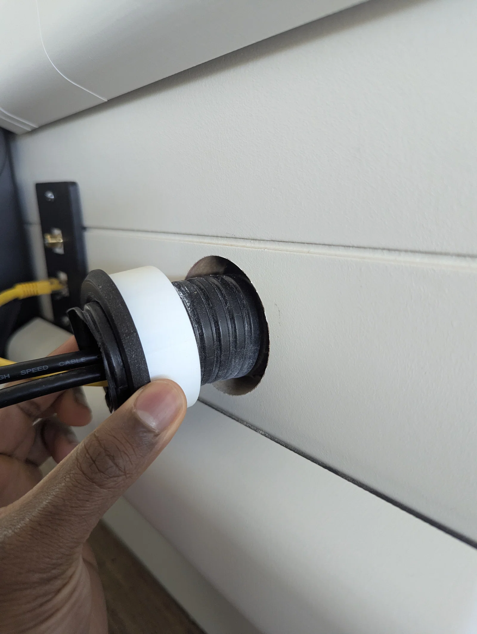 Đây là mẫu nắp đậy/giá đỡ giúp ống conduit điện 2 inch gắn vừa vặn vào lỗ khoan 60mm. Do mình không còn nhiều nhựa in màu đen nên hình ảnh minh họa có cả màu đen và trắng. File này in được ngay mà không cần dùng support.