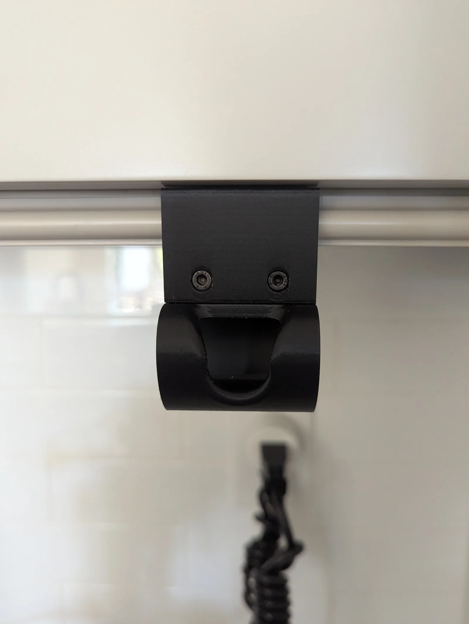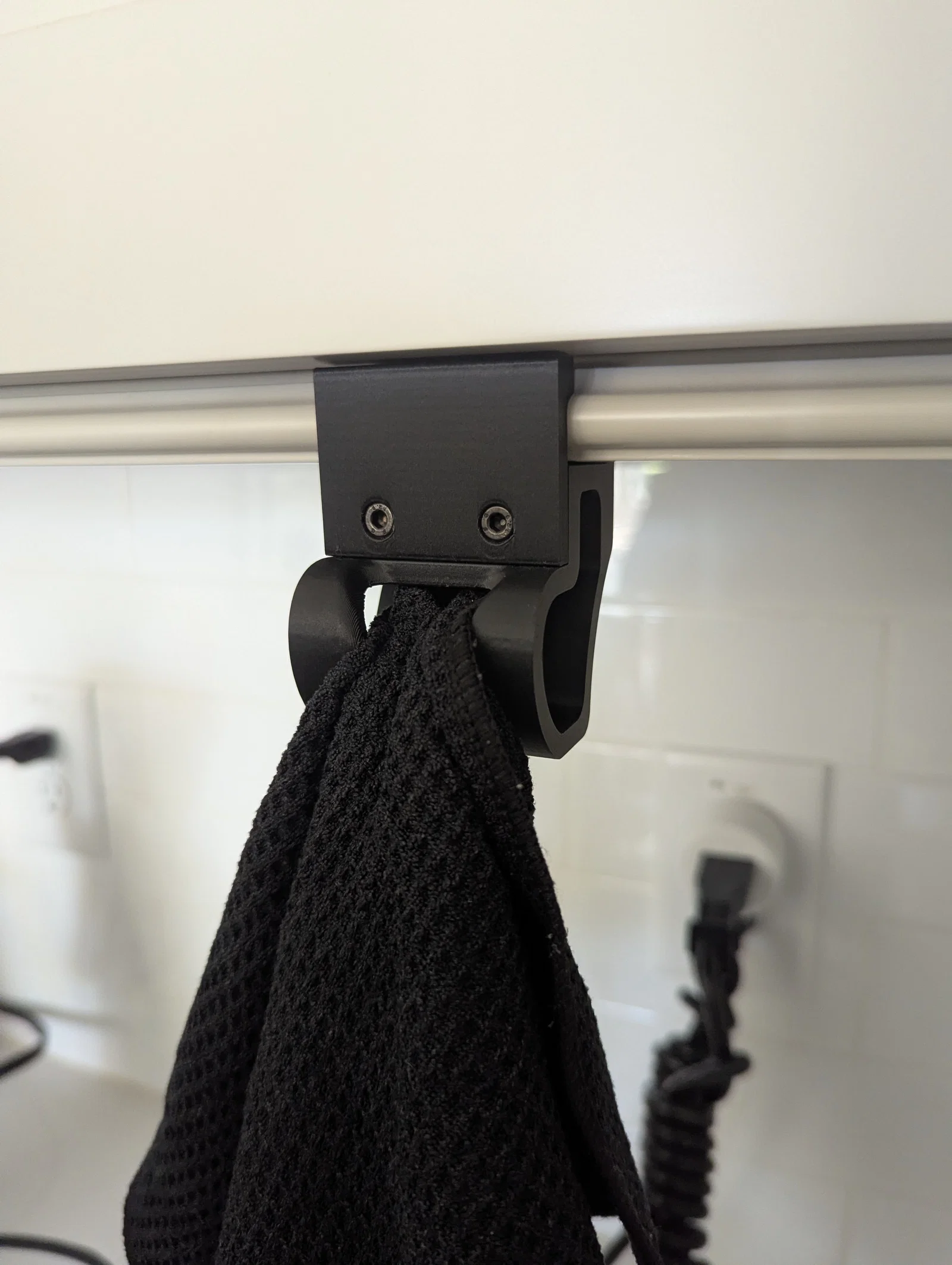 Móc treo khăn nhà bếp được lấy cảm hứng từ các loại móc treo khăn trong nhà tắm. Sau một thời gian dùng thử thiết kế này, mình thấy là mình vẫn thích loại móc treo thông thường hơn. Có lẽ mình sẽ đăng bản phối lại (remix) nếu có thời gian chỉnh sửa thêm. Cần dùng 2 con ốc M4 dài từ 6-22mm và 2 đai ốc lục giác M4. Mô hình để chỉnh sửa trên Onshape