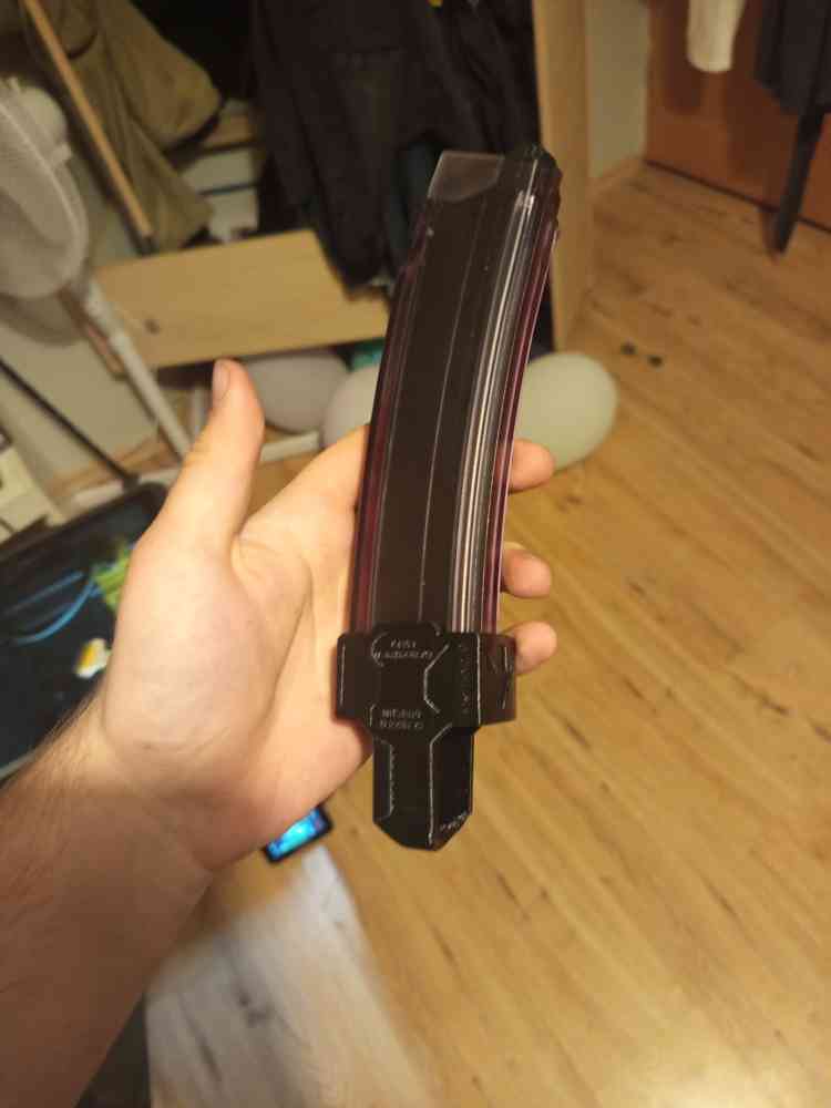 Tui lấy cảm hứng từ mấy cái Magpull cho băng đạn MP5 mà tui đang dùng, tại vì tui rất muốn có món tương tự cho con Scorpion Evo của mình nhưng lại không tìm thấy ở đâu cả. Mấy cái kiểu ốp đáy băng đạn thì tui không thích lắm, tui chỉ muốn làm cái gì đó giống Magpull của MP5 thôi. Món này dĩ nhiên phải in bằng nhựa TPU cho băng đạn ASG CZ Scorpion Evo rồi. Cách gắn rất đơn giản, chỉ cần trượt nó vào thôi, nó khá khít đấy. Trước khi gắn, bạn nên dùng bật lửa hơ nhẹ bên trong một chút cho ấm lên (đừng hơ nhiều quá), rồi hãy gắn vào. Cái phần gờ nhỏ nhô ra ở bên trong tui làm thêm để nó bám chắc hơn và phòng trường hợp nó mắc vào tấm đệm phía sau. Về thiết lập in, tui dùng Orca Slicer và in trên máy Elegoo Centauri Carbon với nhựa Elegoo TPU A95 loại thường: - 2 tường (wall loops/perimeters) - Infill 15% kiểu Gyroid - Bật hỗ trợ (support) kiểu Normal manual - Góc ngưỡng (threshold angle) 30 độ - Chồng lấn ngưỡng (threshold overlap) 50% Nếu mọi người có câu hỏi gì thì cứ hỏi nha, tui sẵn sàng giải đáp. Mọi người cũng thoải mái remix lại mẫu này theo ý thích nhé. À, mấy cái trang trí ở bên hông tui gọi nó là "decorations". Có sẵn một phiên bản không có cái gờ nhô ra bên trong, tui khuyên bạn nên dùng bản đó nếu muốn tháo ra dễ dàng. Nhớ là khi muốn tháo ra thì đừng có cầm cái vòng rồi giật mạnh, kẻo nó đứt vòng đấy, hãy đẩy nó ra thì tốt hơn.