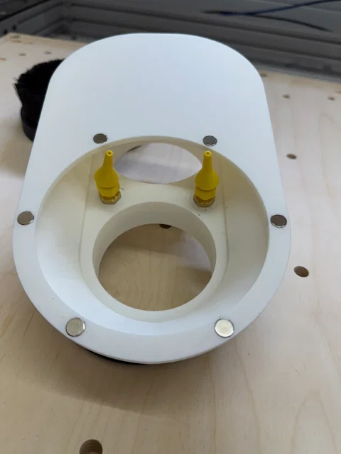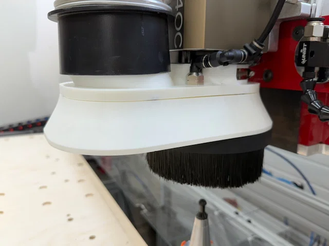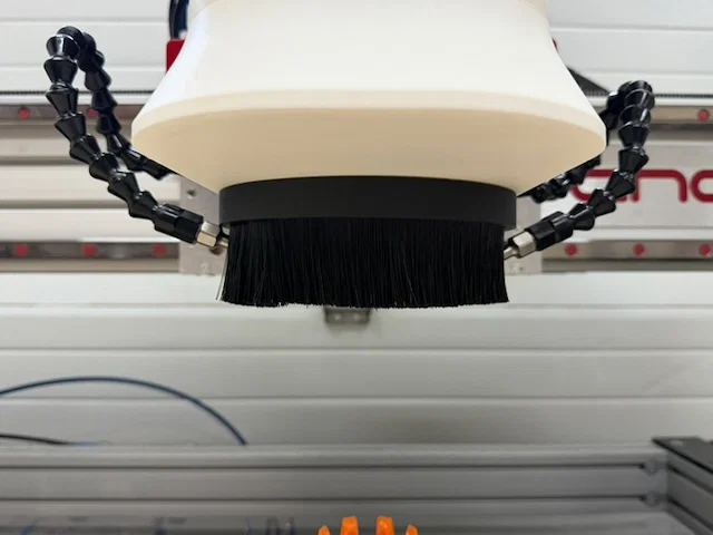 Chụp hút bụi AVID CNC AVx0S - Đây là mẫu chụp hút bụi cực kỳ dễ in dành cho các dòng spindle thông minh của AVID. Thiết kế gồm 3 phần: phần chụp chính có khe dẫn khí cho béc thổi và vòi phun, hộp gom bụi, và vòng đệm chổi quét bụi có lỗ dẫn hướng để định vị các vòi phun khí.