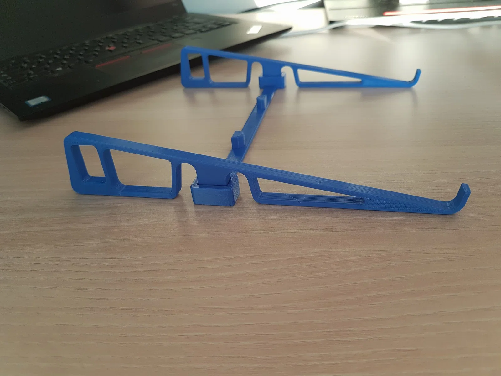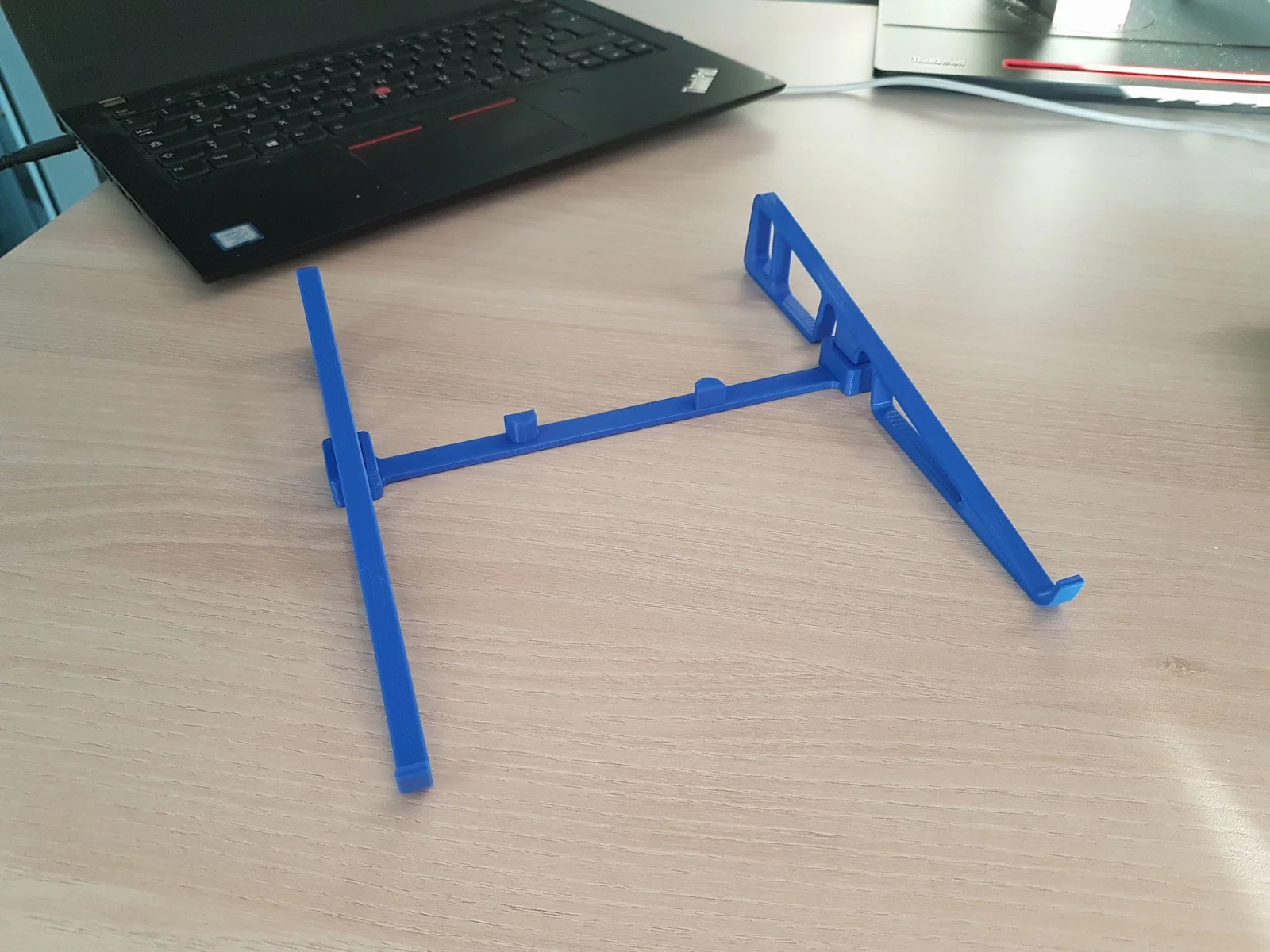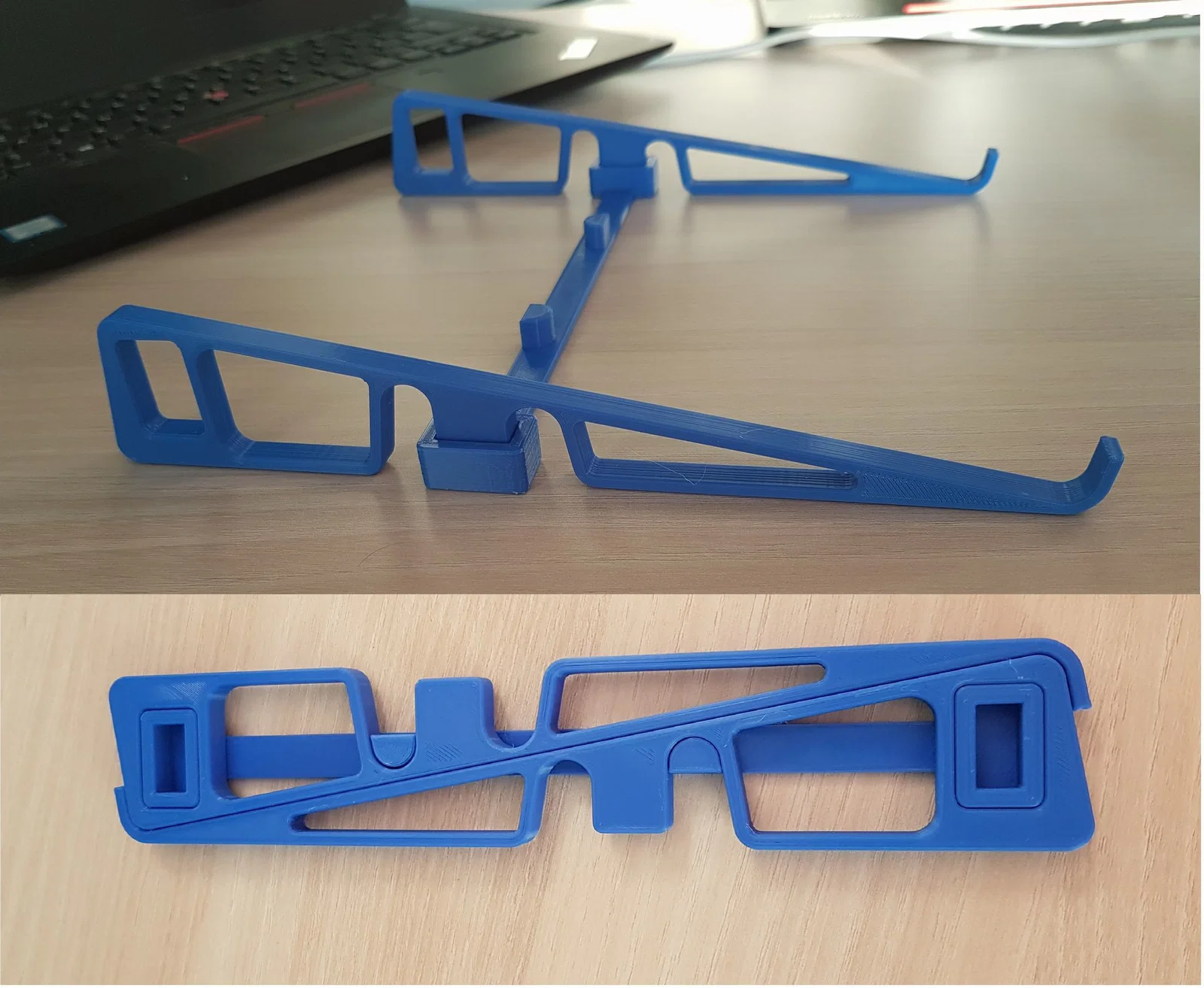 Có rất nhiều giá đỡ laptop di động nhỏ hơn trên Thingiverse và các trang khác (ví dụ: KUNA), nhưng chúng thường không đủ chắc chắn khi bạn vô tình chạm vào máy hoặc khi dùng trên tàu xe. Thiết kế ba phần này là sự cân bằng tốt giữa độ ổn định, khả năng di động và góc nghiêng thấp. Nó rất dễ in (không cần support) và phù hợp với hầu hết mọi loại notebook hay laptop. Với dung sai được giảm bớt, giờ đây nó rất ổn định và ba phần có thể kẹp chặt vào nhau để dễ dàng mang theo.