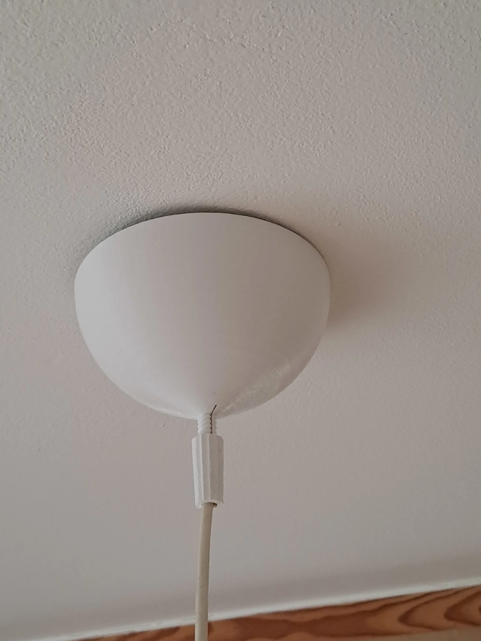 Phụ kiện in 3D thay thế cho nắp che đèn chùm, dùng để giấu đi các chi tiết đấu nối trên trần. Sản phẩm tương thích với các loại đèn treo có dây cáp 6mm như Ikea Hemma, giúp che đậy thẩm mỹ và xử lý các vị trí treo khó.