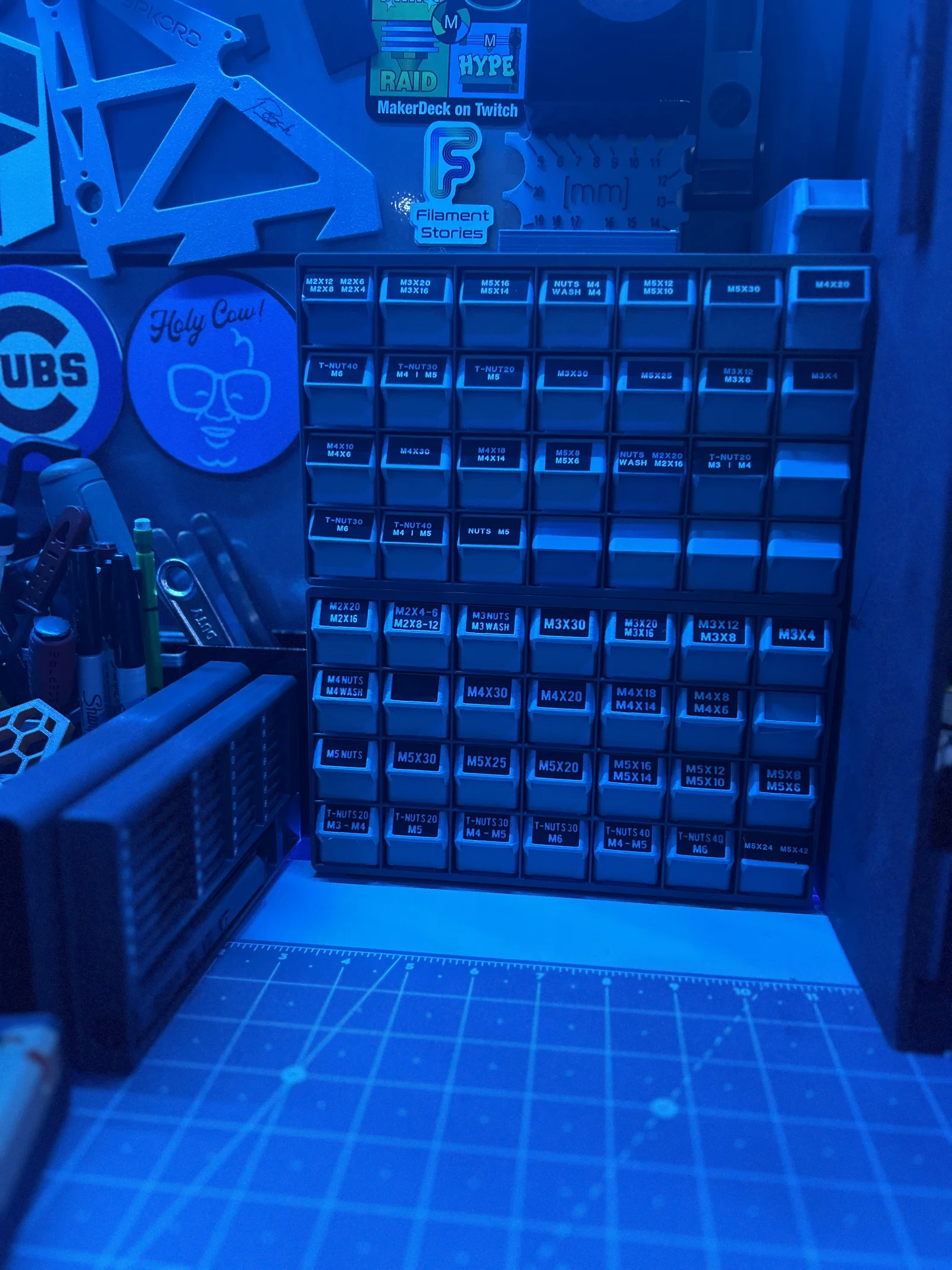 CÁC KÍCH THƯỚC MỚI CÓ SẴN TẠI ĐÂY: Đây là bản cải tiến (nâng cấp cực lớn) từ mẫu Modbot Voron Hardware Organizer tuyệt vời. (Bạn có thể tìm thêm các ngăn kéo khác trên Thangs) THÔNG SỐ IN: Chiều cao lớp (Layer Height): 0.2mm Hỗ trợ (Supports): Chỉ dùng trên ngăn kéo (Khuyến khích dùng Tree Supports chỉ ở phần gờ phía trước) Có gì mới và thay đổi? Thêm chốt chặn ngăn kéo!!! Không còn sợ bị rơi ốc vít ra ngoài nữa. Thêm không gian căn chỉnh để dễ dàng xếp chồng lên nhau. Thêm chỗ để nam châm lớn ở mặt trên. Phiên bản mặt bên phẳng để các ngăn đặt sát nhau không bị hở. 28 khe ngăn kéo. Bao gồm các mẫu ngăn kéo của riêng tôi và cả ngăn kéo không có tay nắm (no scoop) nguyên bản. Tương thích hoàn toàn với tất cả các ngăn kéo gốc. Sử dụng nam châm 6x3 kèm keo dán. Hãy dán keo vào lỗ, sau đó dùng một viên nam châm khác ở trên để đẩy/thả viên nam châm vào đúng vị trí. Video trải nghiệm ScrewUnit thực tế: https://www.tiktok.com/@k2_kevin/video/7333459188099730719?is_from_webapp=1&sender_device=pc&web_id=7287757770546497067 Bản remix này dựa trên mẫu của Modbots & Minesweeps nhằm thêm nhiều ngăn kéo hơn và chống rơi. Vui lòng ghi công cho tác giả gốc. Bản gốc của ModBot: https://thangs.com/designer/Modbot/3d-model/Voron%200.1%20Hardware%20Organizer-23915