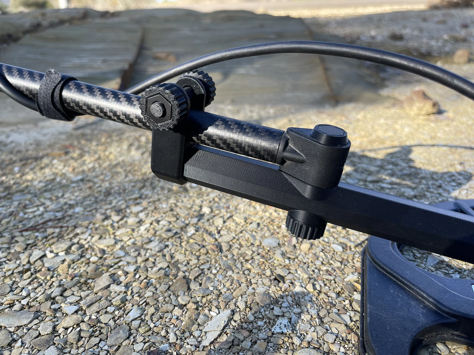 Phần mở rộng trục Nox 900 này được thiết kế để giải quyết các vấn đề do trục dưới bằng sợi carbon có tính dẫn điện được bắt vít trực tiếp vào cuộn dây. Điều này đặc biệt quan trọng đối với các bác đi dò vàng hay gặp tình trạng bị nhiễu (knock sensitivity) khi đặt trục nằm ngang sát với cuộn dây lúc lấy mục tiêu. Ngoài ra, nó còn hữu ích trong quá trình tìm kiếm, nhất là khi làm việc ở những địa hình đá gồ ghề, nơi cuộn dây thường xuyên bị xoay so với trục.