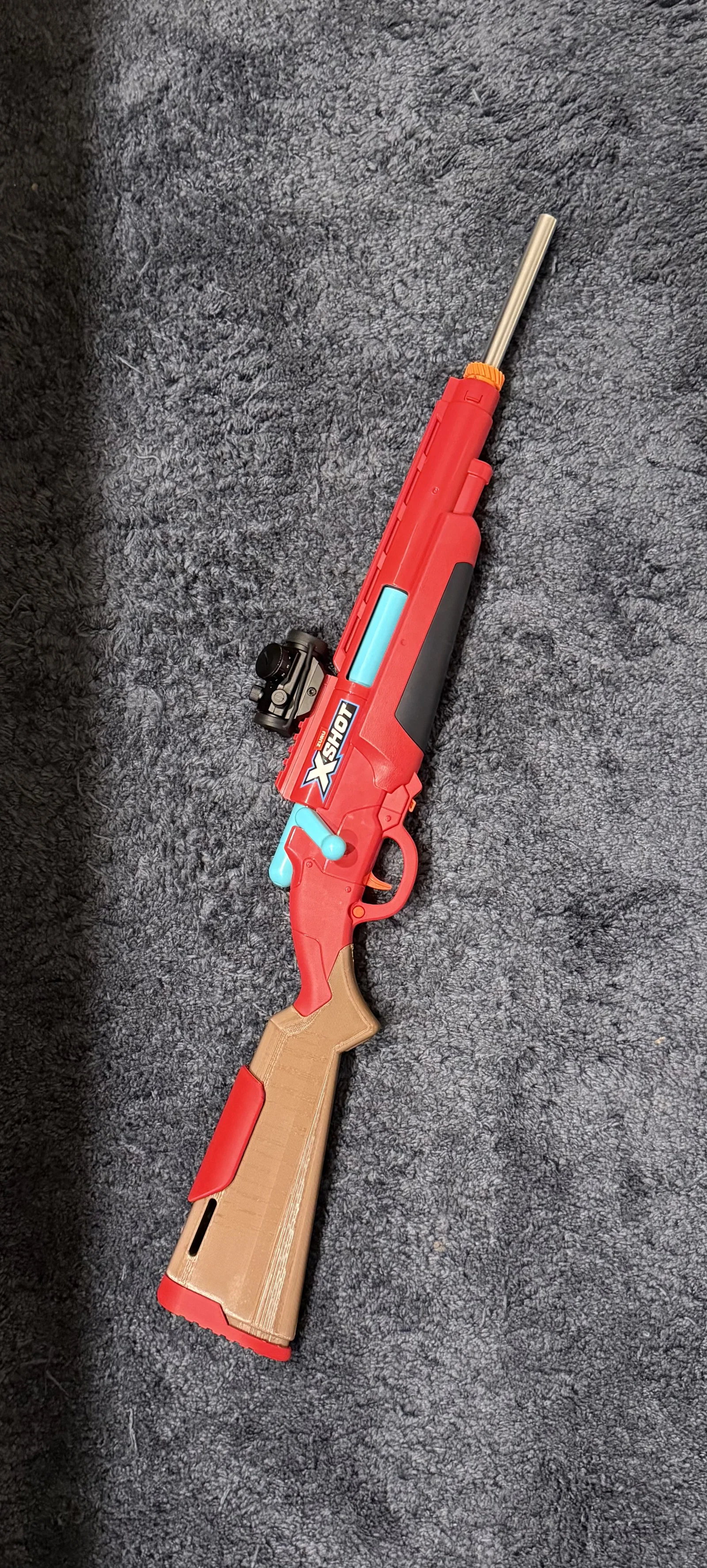 Đây là bản REMIX từ bản mod nòng của @MelBlaster_903261. Bản REMIX này giúp dời nòng súng sát vào chốt đẩy (bolt) hơn và tạo độ khít tốt hơn cho đạn. Mình cũng đã thêm một vòng collet vào phía trước ống giữ nòng để cố định nòng chắc chắn hơn và giúp việc bảo trì dễ dàng hơn (cái đầu chụp màu cam tháo ra khó quá mà haha).