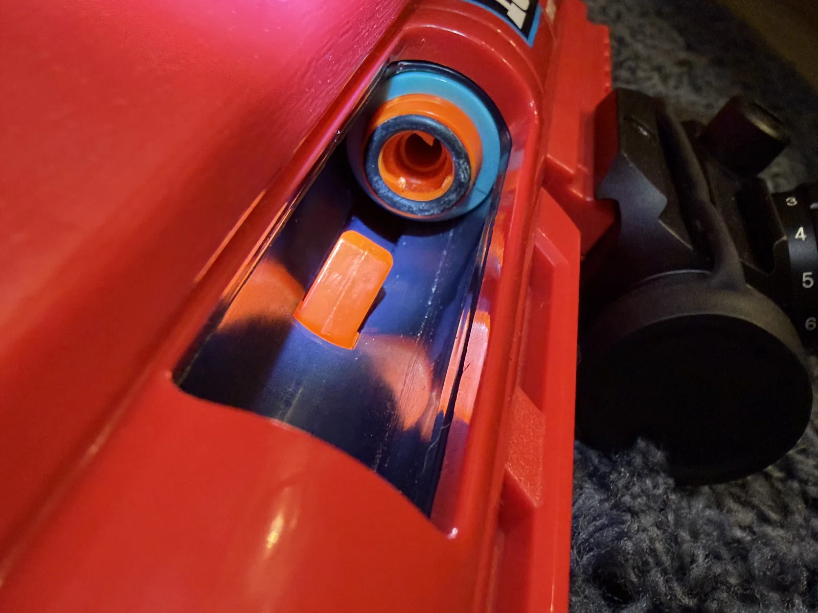 Để tối ưu hiệu suất, cách tốt nhất là thay vòng đệm mút trên chốt đẩy bằng O-Ring để đạt hiệu năng TỐI ĐA. Mình đã tận dụng cái O-Ring đi kèm trong bộ thay thế ống hơi X-Shot Longshot từ Out Of Darts. Mình lột bỏ vòng mút cũ, dán O-Ring mới bằng keo siêu dính và giữ cố định một vài phút trong lúc tra thêm keo.