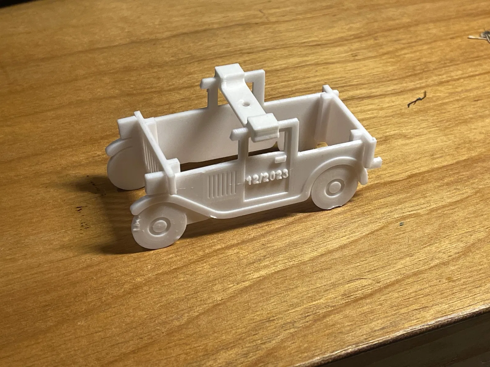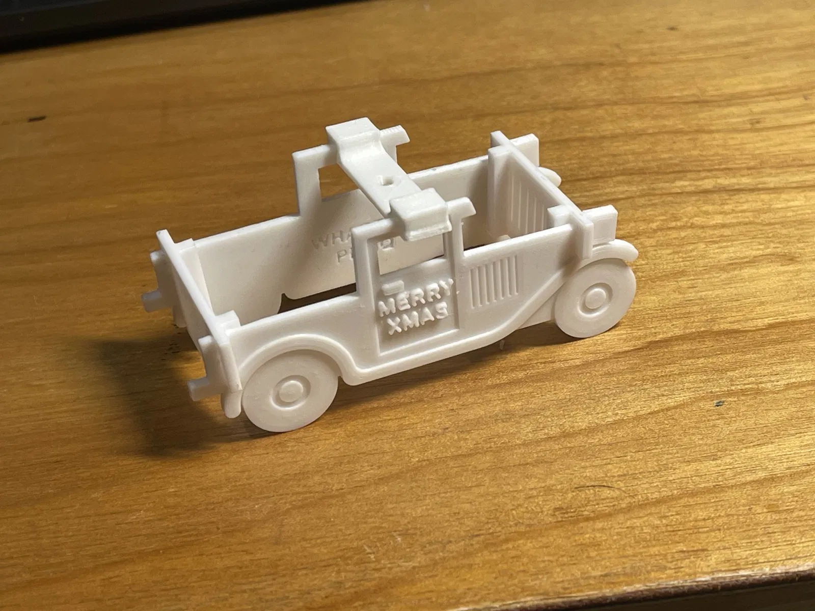 Chiếc xe tải Model T năm 1921 này được làm từ các bộ phận lắp ghép với nhau. Bạn có thể gửi nó cùng với thiệp Giáng sinh của bạn. Bạn có thể thêm một cái móc bằng dây trên mái để treo nó lên cây thông Noel. Vợ tôi nghĩ rằng nó không mang tính Giáng sinh lắm, nhưng tôi thích nó. Tôi không cần phải sử dụng bất kỳ loại keo nào.
