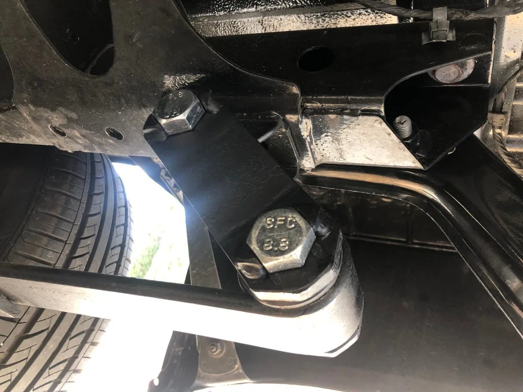 Đối với xe off-road cần độ nhún của trục, chạy bu-lông không cần ống lót sẽ hiệu quả hơn vì cho phép các tấm bên di chuyển độc lập. Bạn cần chọn bu-lông có đường kính khớp với đường kính trong của ống lót mắt nhíp, ví dụ 18mm (https://amzn.to/4bufZRX). Nếu bu-lông hơi dài một chút cũng không sao, miễn là phần thân không ren nằm xuyên qua ống lót nhíp là được, phần ren thừa có thể cắt bỏ sau.