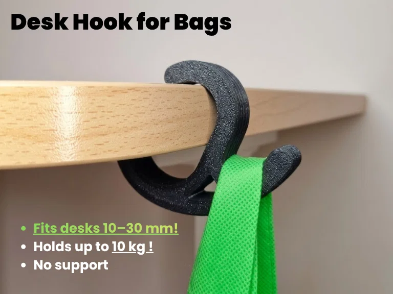 Bạn đã chán ngấy cảnh phải để túi xách, ba lô hay phụ kiện dưới sàn nhà? Chiếc móc treo bàn làm việc in 3D tinh tế này được gắn dưới mép bàn, giúp bạn sắp xếp đồ đạc gọn gàng và tránh xa bụi bẩn dưới sàn. Dù chỉ in bằng PLA nhưng nó vẫn chịu được tải trọng lên tới 10 kg, với thiết kế tối giản, chắc chắn giúp giữ đồ vật của bạn cố định. Sản phẩm có nhiều màu sắc bắt mắt như đen, xanh navy, xám hoặc bạc ánh kim, cực kỳ phù hợp với không gian làm việc hiện đại. Bạn có thể in bằng các loại vật liệu bền bỉ như PLA hoặc PETG, đây là phụ kiện hoàn hảo cho góc làm việc tại nhà hoặc văn phòng.