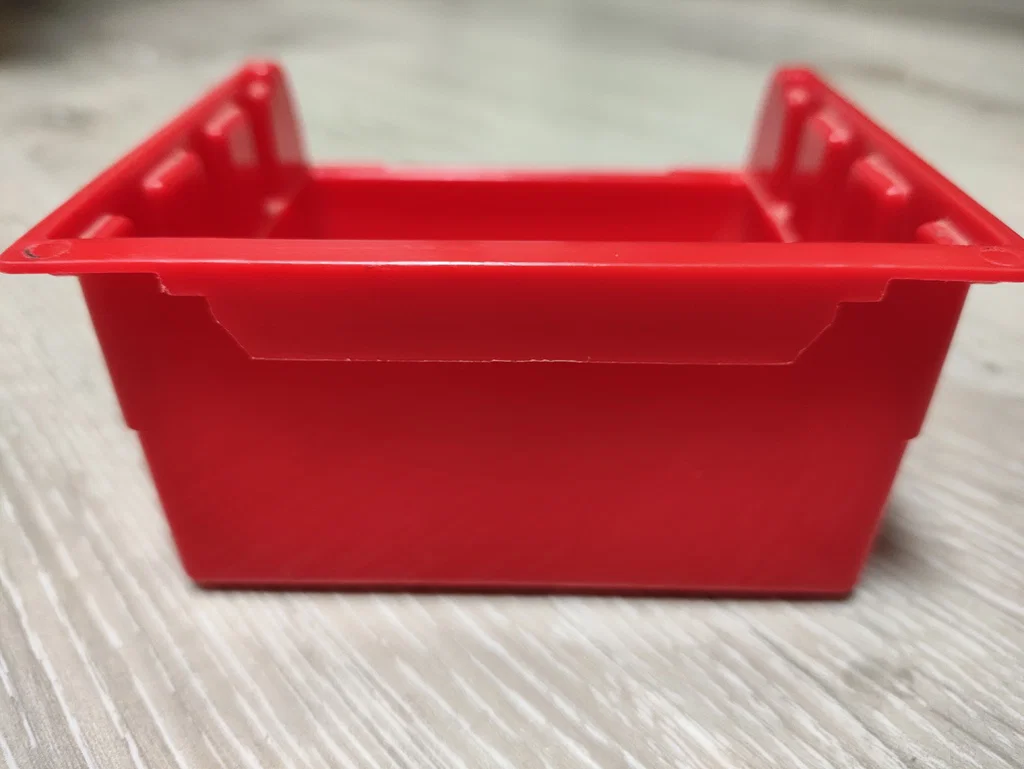 Tự thiết kế giá đỡ cho các hộp nhựa xếp chồng (9.5 x 10 x 5 cm) gắn lên bảng Euro pegboard. Thiết kế chắc chắn với hai tùy chọn độ dày 4.9mm và 5.1mm.
