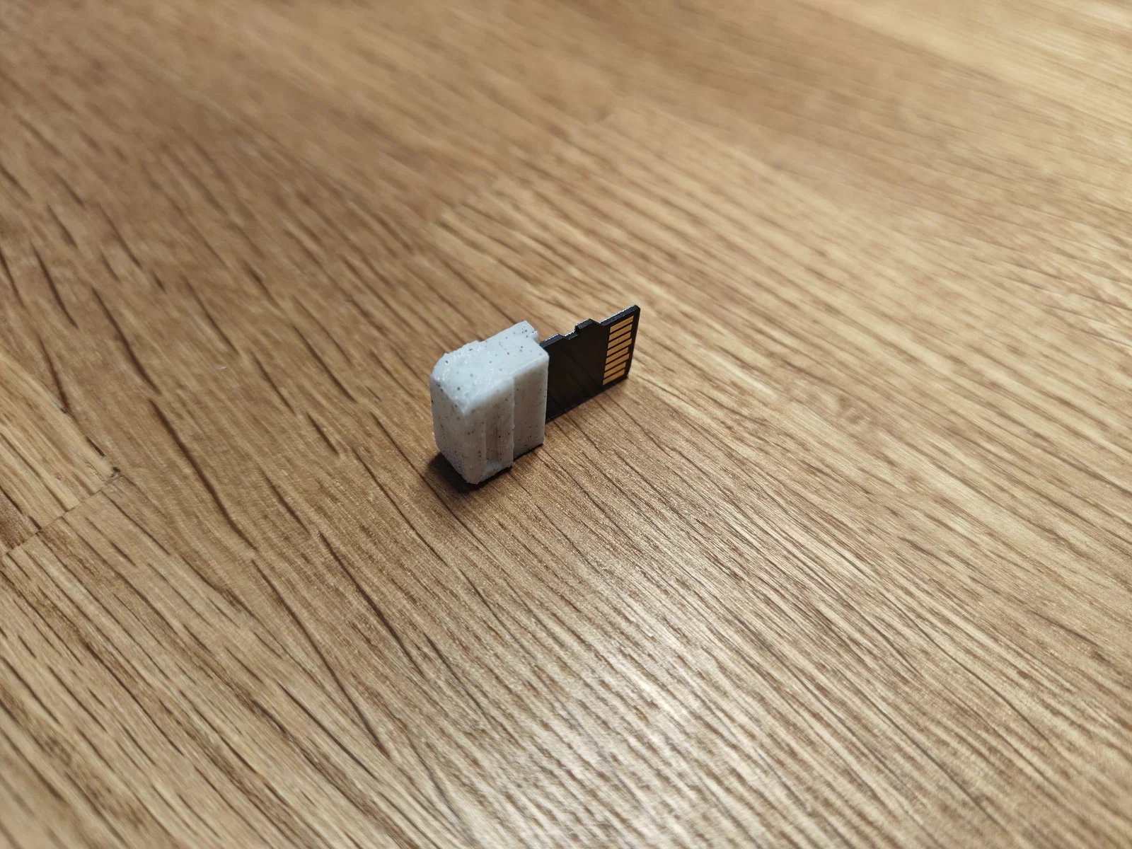 Phần adapter thẻ SD được thiết kế dạng press-fit, bạn chỉ cần trượt nó vào thẻ SD từ một bên là được.