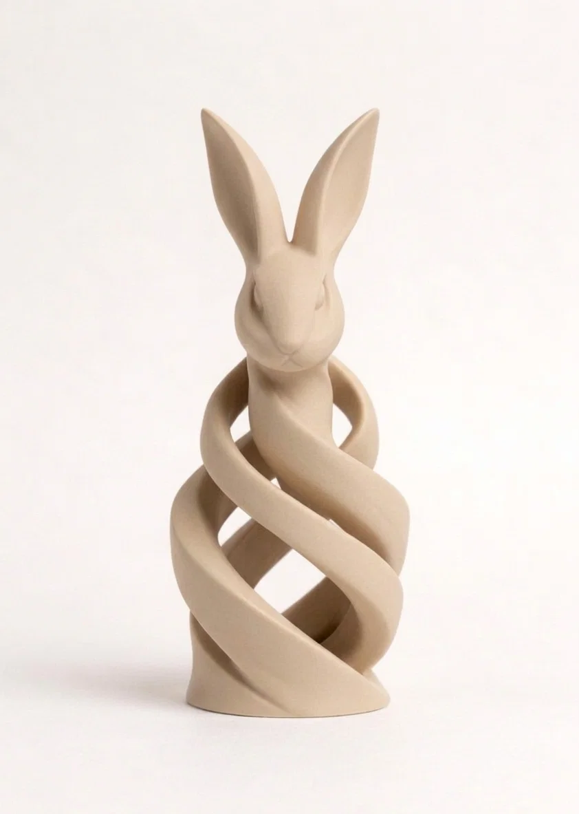 Thêm một chút nét tinh tế và hiện đại cho không gian trang trí lễ Phục Sinh của bạn với Tượng Thỏ Xoắn Ốc độc đáo này. Được thiết kế với những đường nét mềm mại, uyển chuyển cùng cấu trúc xoắn ốc ấn tượng, tác phẩm này kết hợp hoàn hảo giữa phong cách tối giản và hình khối tự nhiên, tạo nên một hình dáng đầy cuốn hút từ mọi góc nhìn.