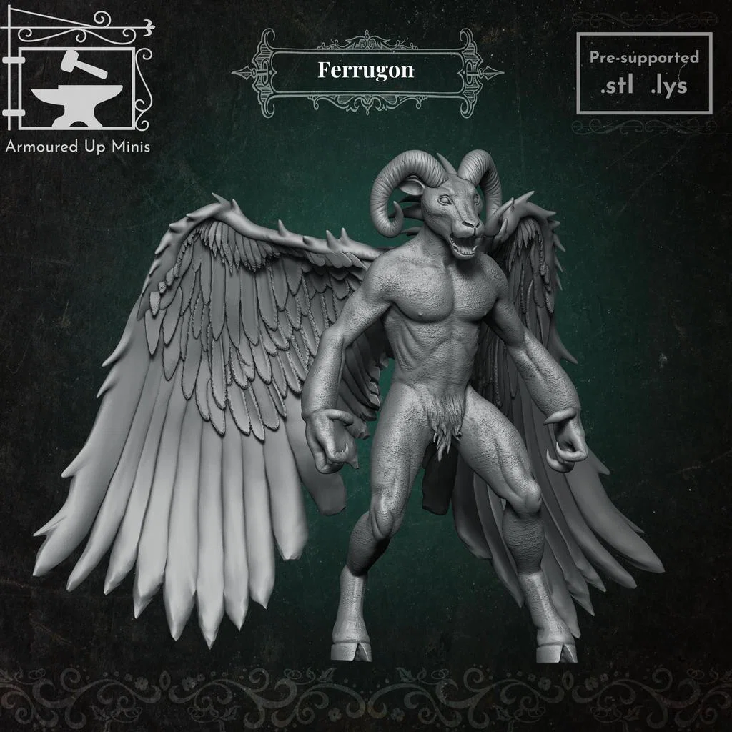 Khám phá Ferrugon, mô hình thu nhỏ 32 mm chi tiết dành cho Pathfinder và D&D. Sản phẩm được hỗ trợ sẵn (pre-supported) để in resin cực đẹp và hoàn toàn miễn phí từ Armoured Up Minis.
