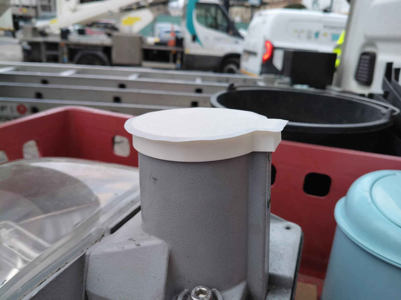 Thiết kế của nắp được tối ưu hóa với phần vành bao quanh chắc chắn, đảm bảo bám chặt vào thân đèn mà không cần dùng đến các loại keo hay ốc vít phức tạp. Bạn chỉ cần thao tác nhấn nhẹ là nắp đã khớp vào vị trí, cực kỳ tiện lợi cho các kỹ thuật viên phải di chuyển nhiều lần trong ngày. Việc sử dụng vật liệu in 3D dẻo giúp nắp có độ đàn hồi tốt, không bị giòn gãy dưới tác động của nhiệt độ môi trường hoặc va chạm nhẹ khi xếp dỡ hàng hóa trên xe tải hay trong thùng chứa đồ nghề.